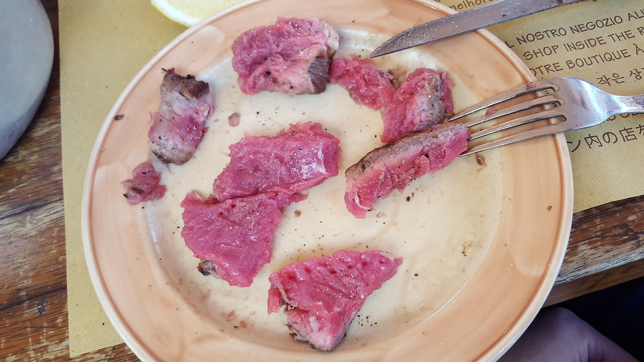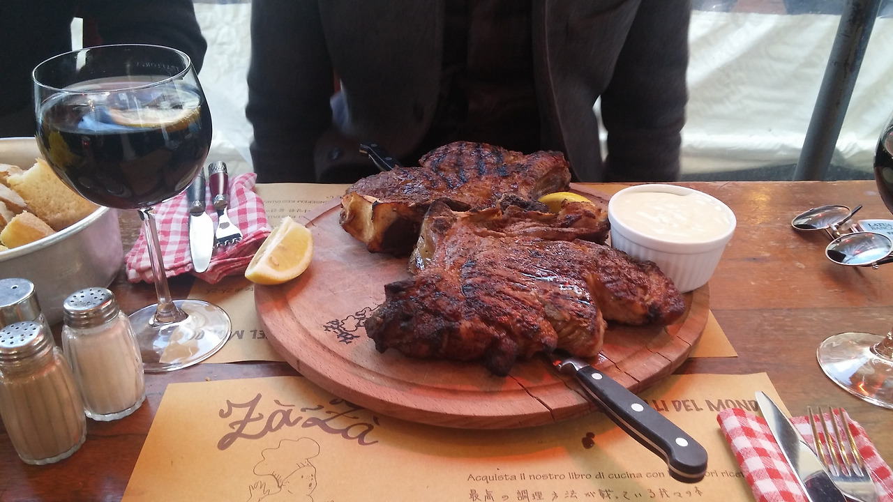 아마 피렌체라고 하면 사람들이 가장 먼저 생각하는 음식은 티본스테이크일 것이다. 학생이었던 당시에는 한국에서 스테이크를 자주 맛보진 못했다. 하지만, 티본스테이크로 유명한 이탈리아 토스카나 지방에서 이 음식을 먹지 않으면 크게 후회될 것 같았다. 그래서 이탈리아에서 한 번은 제대로 된 스테이크를 먹겠다고 다짐했고 그중에서도 티본스테이크를 꼭 먹겠다고 생각했다. 누가 만들었는지는 모르겠지만 인터넷을 찾아보면 피렌체에는 3대 티본스테이크 레스토랑이 있다고 한다. 우리는 그중 자자 레스토랑(Trattoria ZàZà)으로 갔다.