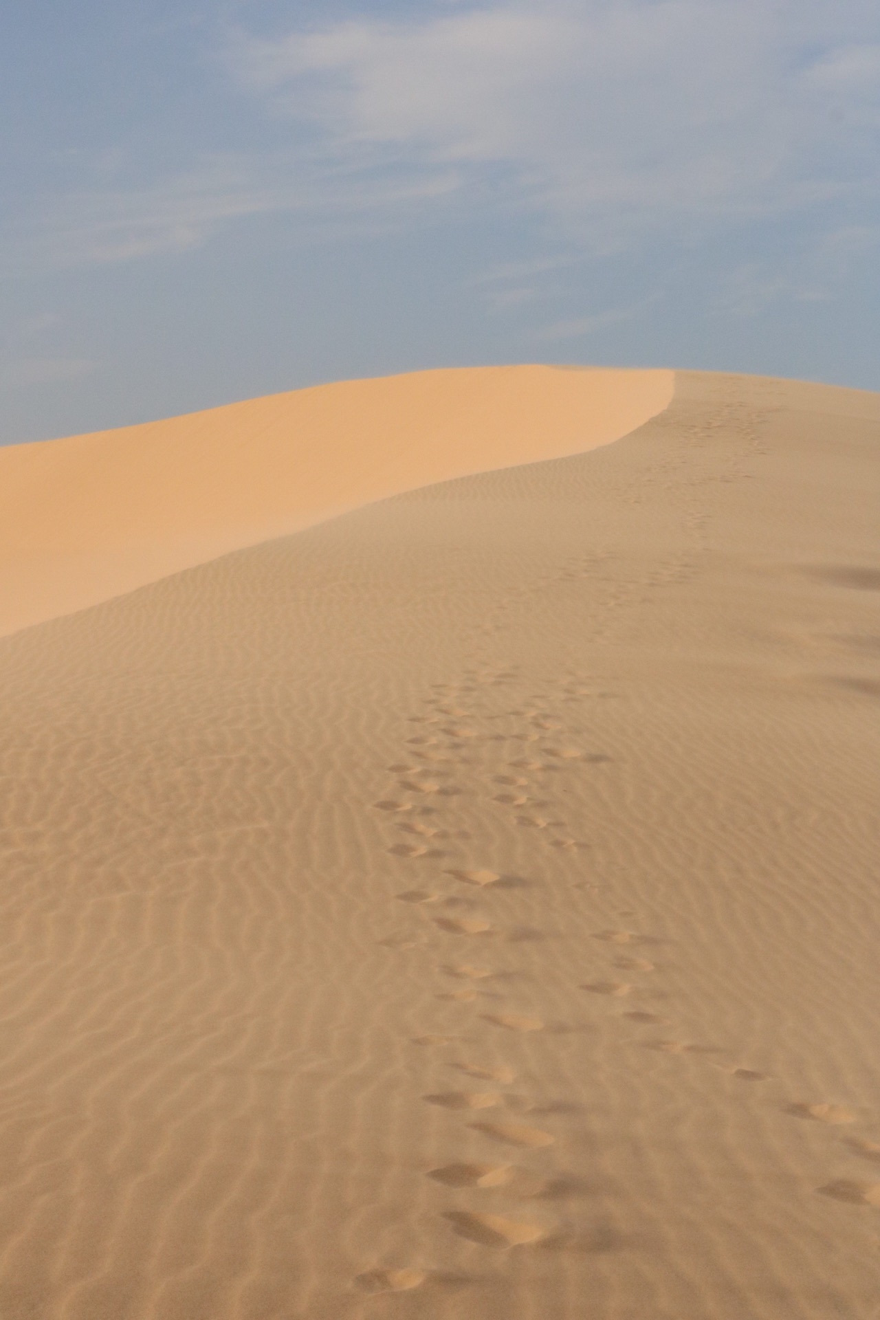 모든 사람은 아니겠지만 나와 비슷한 감정 및 취향을 가지는 사람들이 있을 것이다. 특히, 그중에는 누구 하나 이유를 확실히 얘기할 수는 없지만 끌리는 것들이 있다. 무이네의 사구에서 나는 세 가지 끌림을 느꼈다. 첫 번째는 아무도 가지 않은 길을 가고 싶은 끌림, 두 번째는 높은 곳에 대한 끌림, 세 번째는 석양에 대한 끌림이다. 여전히 확실한 이유는 모르겠지만 잠시 생각해본 바에 대해 끄적여본다.