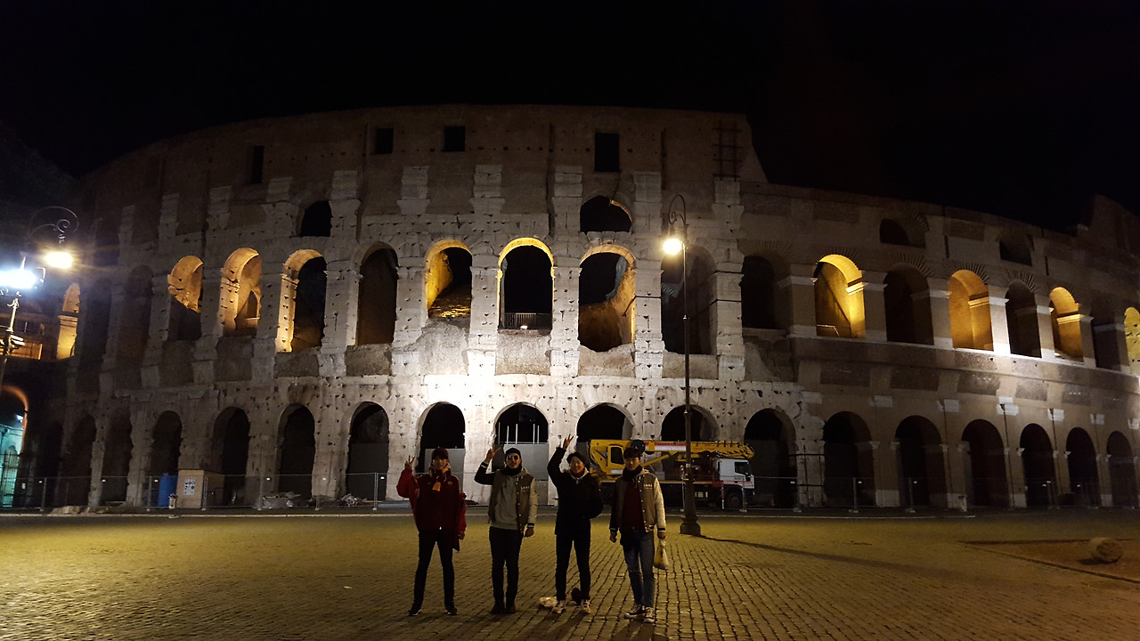 이전 편에서 얘기한 것처럼 우리가 이탈리아를 방문한 시기인 겨울이 이곳에서는 관광 비수기이고, 그렇다 보니 대부분의 유적지 보수공사가 이 맘 때에 진행되곤 한다는 것을 나중에야 알게 되었다. 안타깝지만 보수공사의 흔적이 드러나지 않는 곳을 찾아 콜로세움을 빛나는 자태를 남기고 아쉬움이 더 커지기 전에 숙소로 돌아갔다. 이렇게 로마에서의 첫날이 마무리되었다.