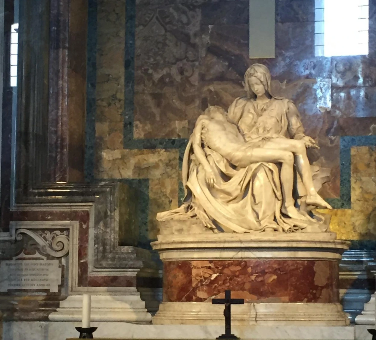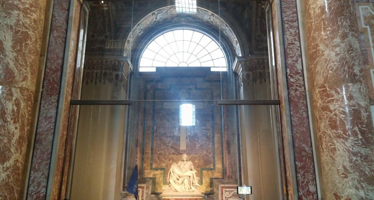 미켈란젤로의 피에타는 작품이 지닌 의미와 가치를 고려했을 때 엄중히 관리하고 온전히 보관할 필요가 있을 것이다. 이 때문에 일반 대중들에게는 방탄유리로 방문객들로부터 안전하게 분리되어 전시되고 있다. 내 기억엔 성 베드로 성당의 조각품 중 이러한 방식으로 전시된 것은 피에타가 유일했던 것 같다. 그리고 아마 특별한 경우를 제외하고는 방탄유리가 치워지는 경우가 거의 없는 것으로 알고 있다. 하지만, 작년 말 문재인 대통령께서 '한반도 평화를 위한 특별 미사'를 위하여 바티칸을 방문했을 때, 문재인 대통령을 위한 교황청이 방탄유리 없이 온전한 모습으로 피에타를 관람할 수 있도록 배려해주었다는 기사를 접했다. 정책에 대한 사람들의 찬반은 나뉠 수 있겠지만, 우리나라를 대표하는 대통령을 전 세계 가톨릭의 수장인 교황께서 세심한 배려를 해주었다는 점에 이 나라의 국민으로서 감동을 받지 않을 수 없었다.