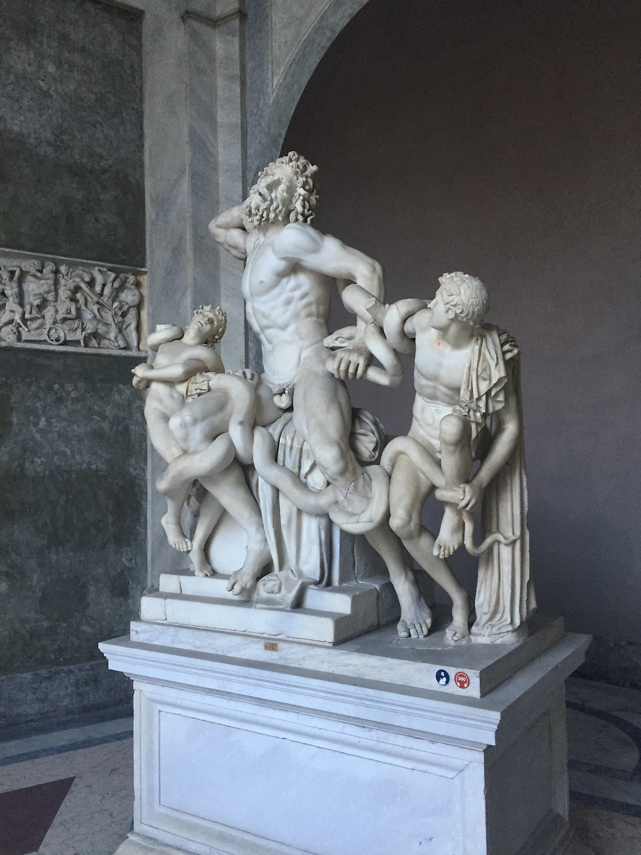 '라오콘 군상'은 바티칸 박물관의 유래가 된다. 아마 중학교 때부터 역사 교과서 또는 미술 교과서에 심심치 않게 볼 수 있었던 이 작품은 제작된 것으로 추정되는 시기에 놀라지 않을 수 없다. 그 형체만 보았을 때는 르네상스 시대 즈음에 제작된 것으로 생각되었지만, 실제로 이 조각품이 제작된 것으로 추정되는 시기는 율리우스-클라우디우스 왕조 시기로 기원전 27년과 기원후 68년 사이 즈음이라고 한다. 2000년이나 거슬러 간 과거에 인간이 이토록 정교한 조각을 할 수 있었다는 점에 놀라지 않을 수 없었다. 이 조각품은 1500년 경에 로마에서 발굴되어 바티칸에서 처음 공개가 되었고, 이때 이 작품이 공개된 것을 바티칸 박물관의 시초라고 보는 사람들이 많은 듯하다. 이 때문에 바티칸 박물관을 상징하는 가장 대표적인 작품이 바로 이 작품이 아닌가 싶다.