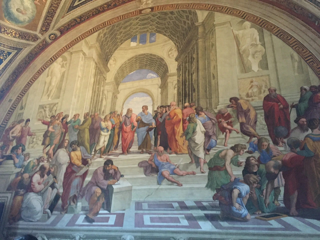 바티칸 박물관에는 또 다른 우리에게 유명한 작품이 있다. 바로, 라파엘로의 '아테네 학당'이며 라파엘로가 고대의 대학자들을 한 자리에 모은 일종의 상상화이다. 플라톤과 아리스토텔레스를 중심으로 걸어 내려오는 대학자들의 모습은 마치 우리나라 영화 '범죄와의 전쟁'의 포스터를 연상시켜 피식 웃음을 짓게도 한다. 철학, 과학, 문학, 예술 등 다양한 분야에서 인류의 혁혁한 족적을 남긴 이들을 한 자리에 모아놓았다는 상상이 재미있으면서도 그들을 찬양하고 존경하는 라파엘로의 마음이 전해지는 작품이었다. 특히, 나는 이 작품에서 무슨 이야기를 하고 있는지는 알 수 없지만 수많은 대학자들이 삼삼오오 모여 얘기하는 모습이 굉장히 인상 깊게 느껴졌다.