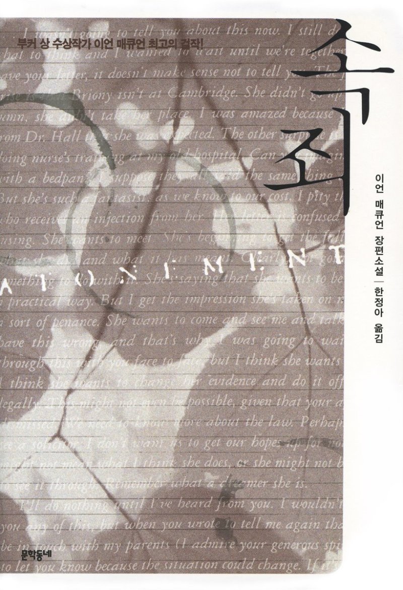 하지만, 영화를 보겠다는 생각을 실천하지는 못한 채 꽤 오랜 시간이 지났다. 그러다 인터넷 커뮤니티에서 한 네티즌이 작성한 책 추천글을 보고 이 영화를 다시 떠올리게 되었다. "유려한 문장과 방대한 서사를 느낄 수 있는 좋은 소설"이라는 작성자의 코멘트로 소개된 글을 통해 『속죄(Atonement)』라는 소설을 알게 되었고, 이 소설이 동명 영화의 원작이라는 것을 확인했다. 그 즉시 서점으로 가서 책을 구입했고, 책을 다 읽은 후 『넷플릭스』를 통해 어렵지 않게 영화를 볼 수 있었다. 원작 도서가 있는 영화의 경우, 책을 읽고 내가 상상한 분위기와 장면을 영화로 확인하는 것을 선호한다. 다만, 이번의 경우 영화를 먼저 보는 것이 좋지 않았을까라는 생각을 했다. 그럼 소설 『속죄』와 영화 『어톤먼트』그리고 소설보다 영화를 먼저 보는 것을 추천하는 이유 등에 대한 생각의 흐름을 풀어보겠다.