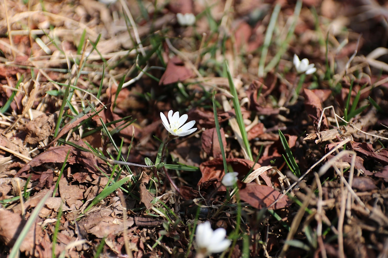 사실 등산로 입구에는 이곳의 야생화, 동물들, 꽃 등등 각종 안내판이 흔하게 보인다. 한 번쯤 읽어 본 다곤 하지만 지금껏 그곳에 실린 주인공들에 진심으로 관심을 가졌던 적은 없었다. 그저 텍스트를 수용만 했었다. 하지만 우연히 만나게 된 이 분의 말씀 하나로 오름을 오르는 즐거움이 생겼다. 정상이라는 목표만 보는 것이 아니라 우연히 마주치는 꽃과 같은 과정에도 신경을 쓰게 되었다. 산을 오르며 혹시라도 귀한 것들을 놓칠까 구석구석을 살피며 올라갔다. 덕분에 나무 밑 응달에 피어있는 얼음꽃들로 발견하고 '새끼노루귀'라는 하얗고 작은 귀여운 꽃도 찾을 수 있었다. 한라산에 계절의 변화가 찾아왔지만, 동시에 내 마음에도 변화가 찾아왔다.