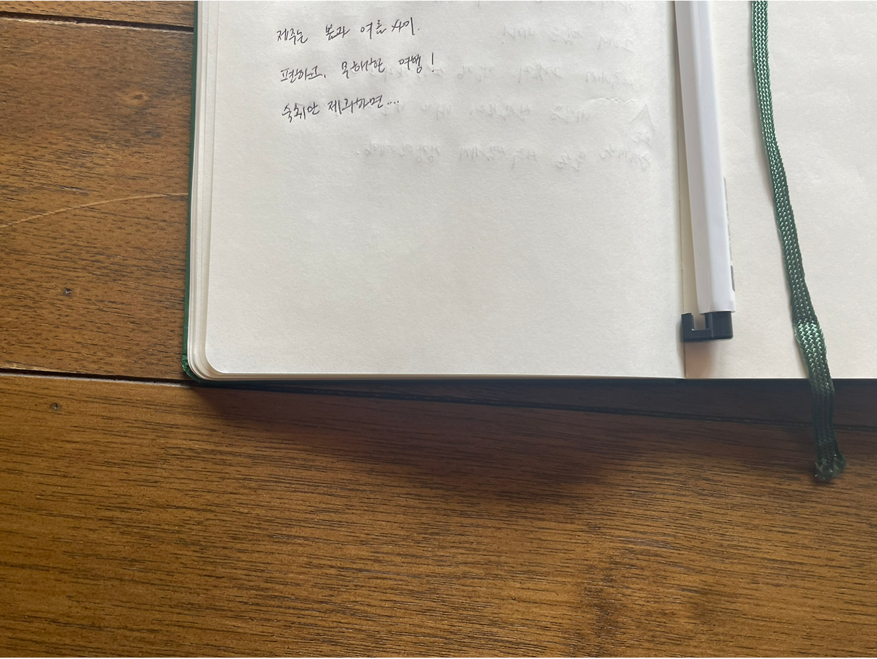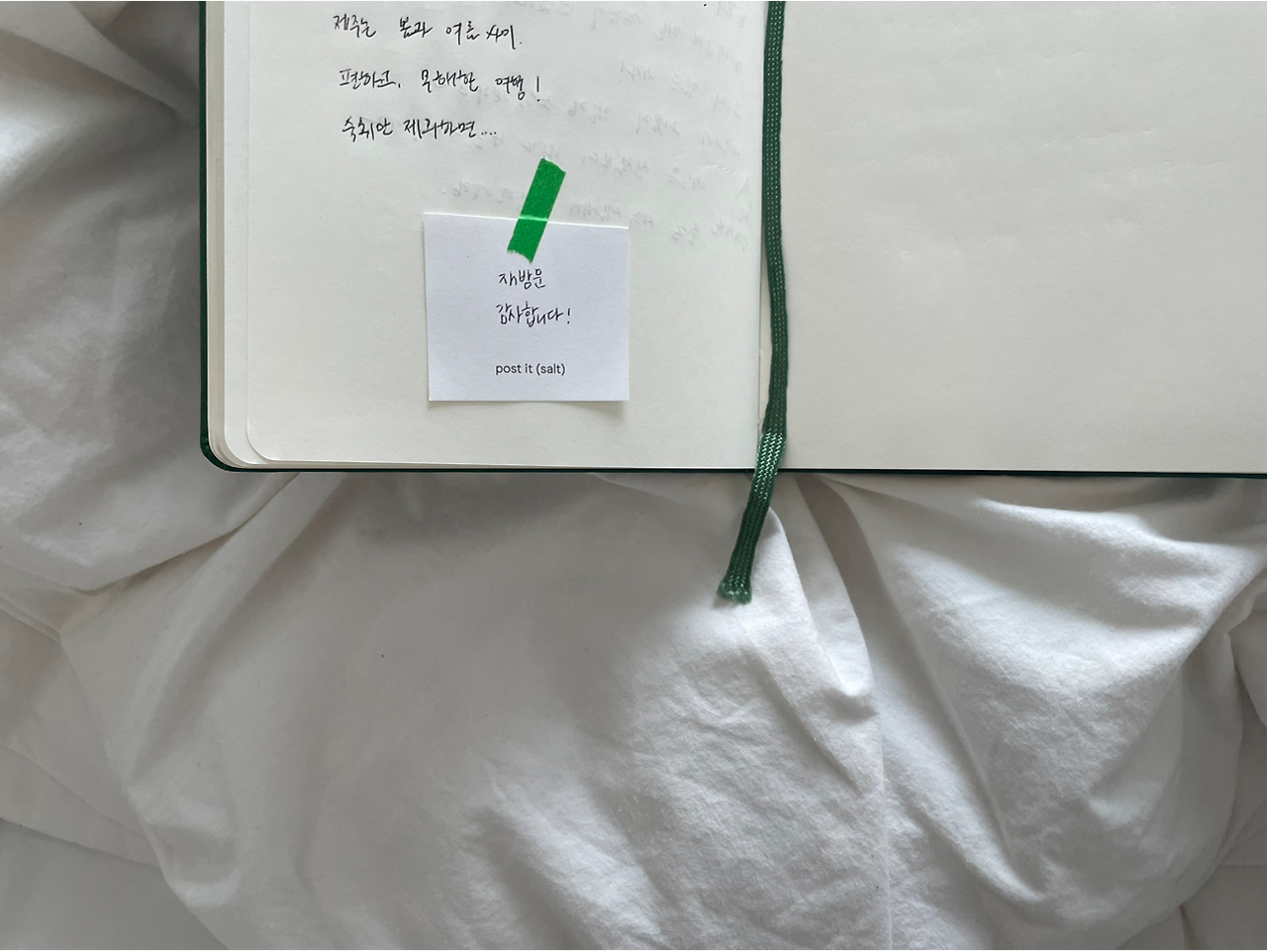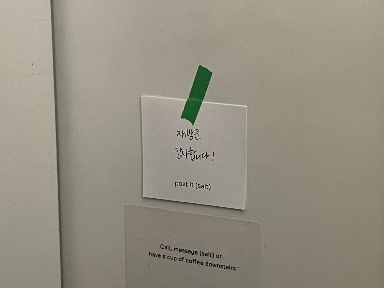 바다 쪽으로 조그만 창이 세 개나 있는 새하얀 방. 숙소가 지어진 지 얼마 안 되어 가오픈으로 운영할 당시 우연히 들르게 된 곳, ‘솔트 애월’ 사실 이 방에서 지금도 좋아하는 문장을 기록했었다. 방과 바다와 관리 잘 된 느낌은 그대로였다. 짐을 풀고 조금 쉬다가 여행 기분을 내고자 걸어서 5분 거리에 있는 엘피바에서 간단하게 술과 음악을 즐길 계획이었다. 걸어가는 동안 일몰을 발견하면 찍으려고 카메라도 챙겼다. 문을 열고 나서려는 순간 손잡이에 붙어 있는 작은 쪽지를 발견했다. 들어올 땐 미처 발견 못한 따듯한 말이 적혀있었다. 재방문 감사합니다. 디지털 시대에 재방문쯤은 누적 예약으로 금방 알 수 있었을 테지만 비대면으로 운영하는 숙소임에도 투숙객을 위하는 마음이 느껴져 감동했다. 섬세함은 또 한 번 이곳을 방문할 이유를 만들어준다지.