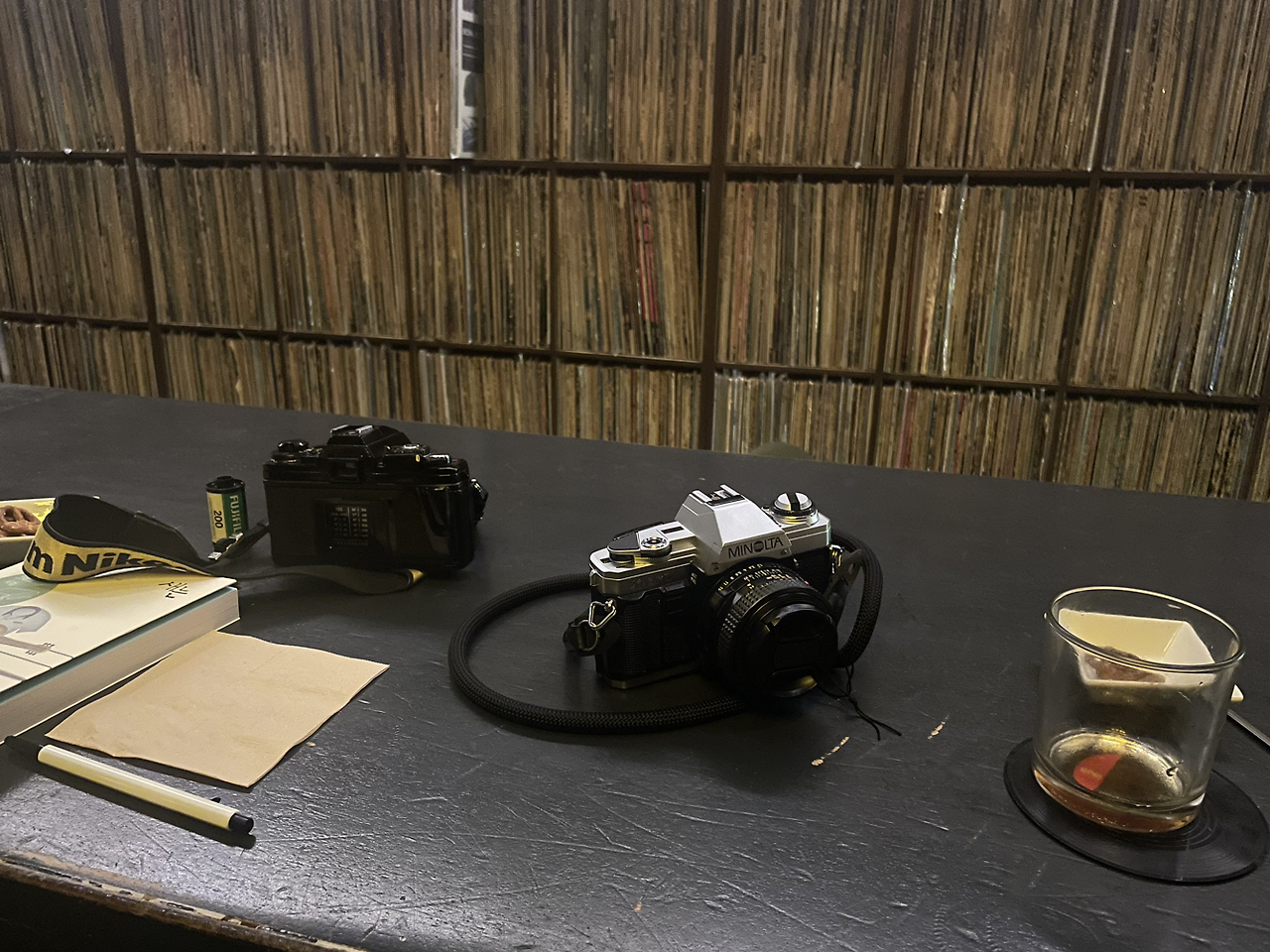 대화는 자연스럽게 시작되었다. 종류를 바꿔가며 두세 잔쯤 마시다 보니 사장님이 카메라에 대해 먼저 질문을 했고, 책 읽던 이까지 카메라 대화에 관심을 가지게 된 것이다. 알고 보니 그는 내가 가진 카메라와 거의 유사한 카메라를 쓰고 있었고 사용 경력이 무려 7년이나 된다는 것이다. 그는 카메라를 보여주겠다며 적극적으로 차에서 꺼내오기까지 했다. 이 호의에 제대로 된 리액션을 해야겠다는 다짐과 동시에 그저 멋으로 가져온 카메라의 기능을 제대로 익힐 수 있는 절묘한 기회라고 생각했다. 역시 그는 내 질문에 진지하게 응해주었다. 나는 그 카메라 고수에게 조리개와 초점, 단렌즈의 특징까지 배웠다. 그의 카메라 중 하나인 미놀타 x-700의 렌즈를 빼서 내 카메라에 끼워 보기도 하며 강의를 수강하듯 경청했다.