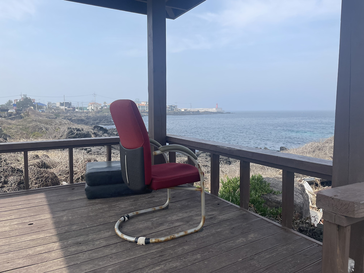 오후 7시부터 자정까지 마셔댄 탓에 상쾌한 아침을 기대하는 건 양심에 어긋나지만, 여행까지 와서 숙취에 허덕이는 꼴이라니 잠깐 나 자신이 한심해졌다. 조식을 예약해 둔 탓에 9시에 억지로 로비로 내려갔다. 예쁘게 차려진 감자수프와 호밀빵, 아이스커피를 마시니 컨디션이 회복되는 듯했다. 밖으로 나가 조금 걷다가 오전 내내 휴식했다. 오후가 되어 겨우 밖으로 나와 사진을 찍었다. 어제 배운 대로 조리개를 최대한 열고 초점을 맞추는 척…. 하며 ‘찰칵’ 소리에 기대 고내포구의 이것저것을. 며칠 전까진 추웠다던데 봄과 여름 사이를 오가는 제주의 변덕스러운 날씨에 헥헥 거리며, 단벌인 나 자신을 원망하기도 하며, 걷다 마주친 커피숍에 들어가 일기도 쓰고, 가져온 책도 읽으며 나 자신과 약속한 시간을 조용히 만끽했다.