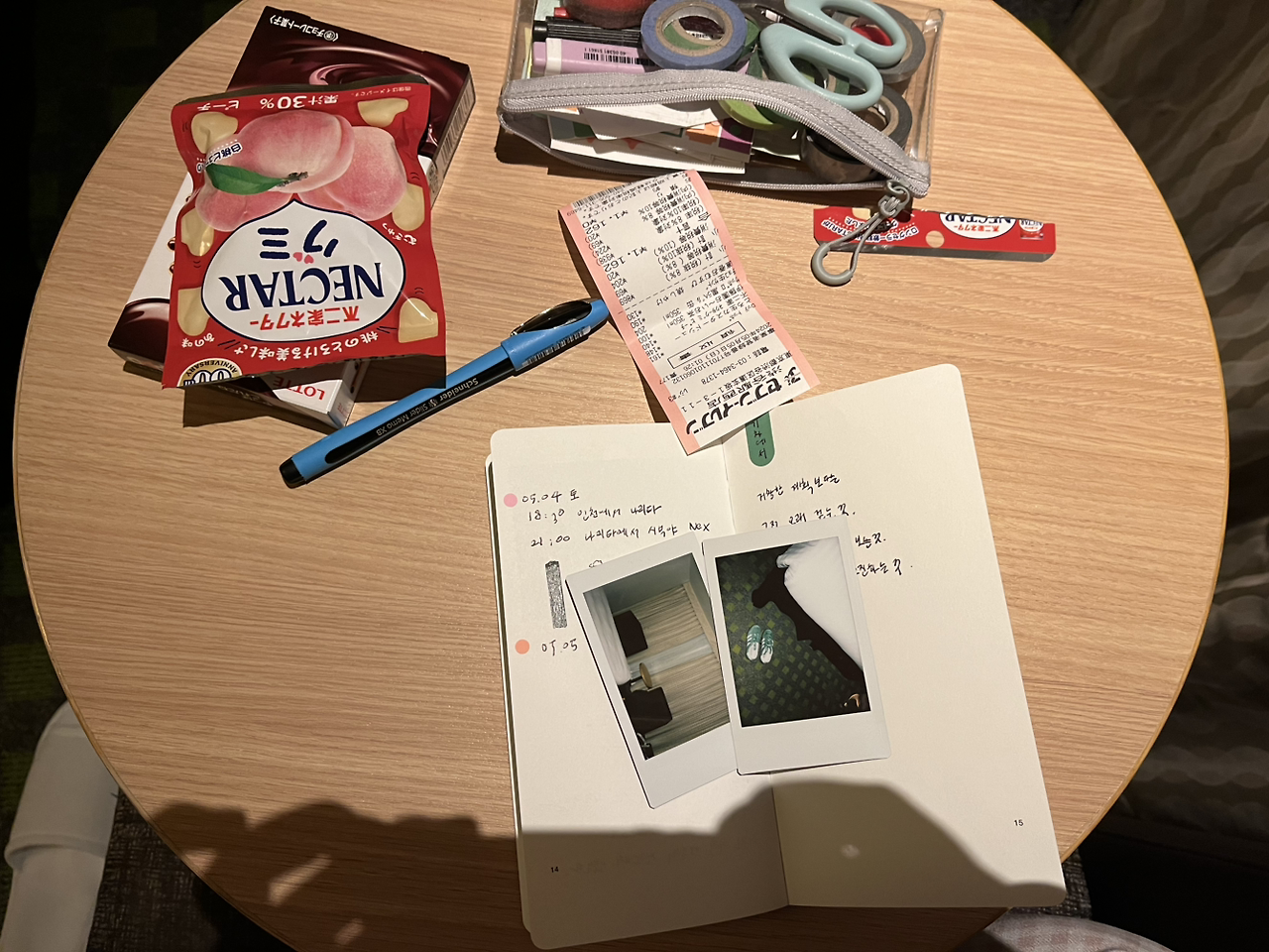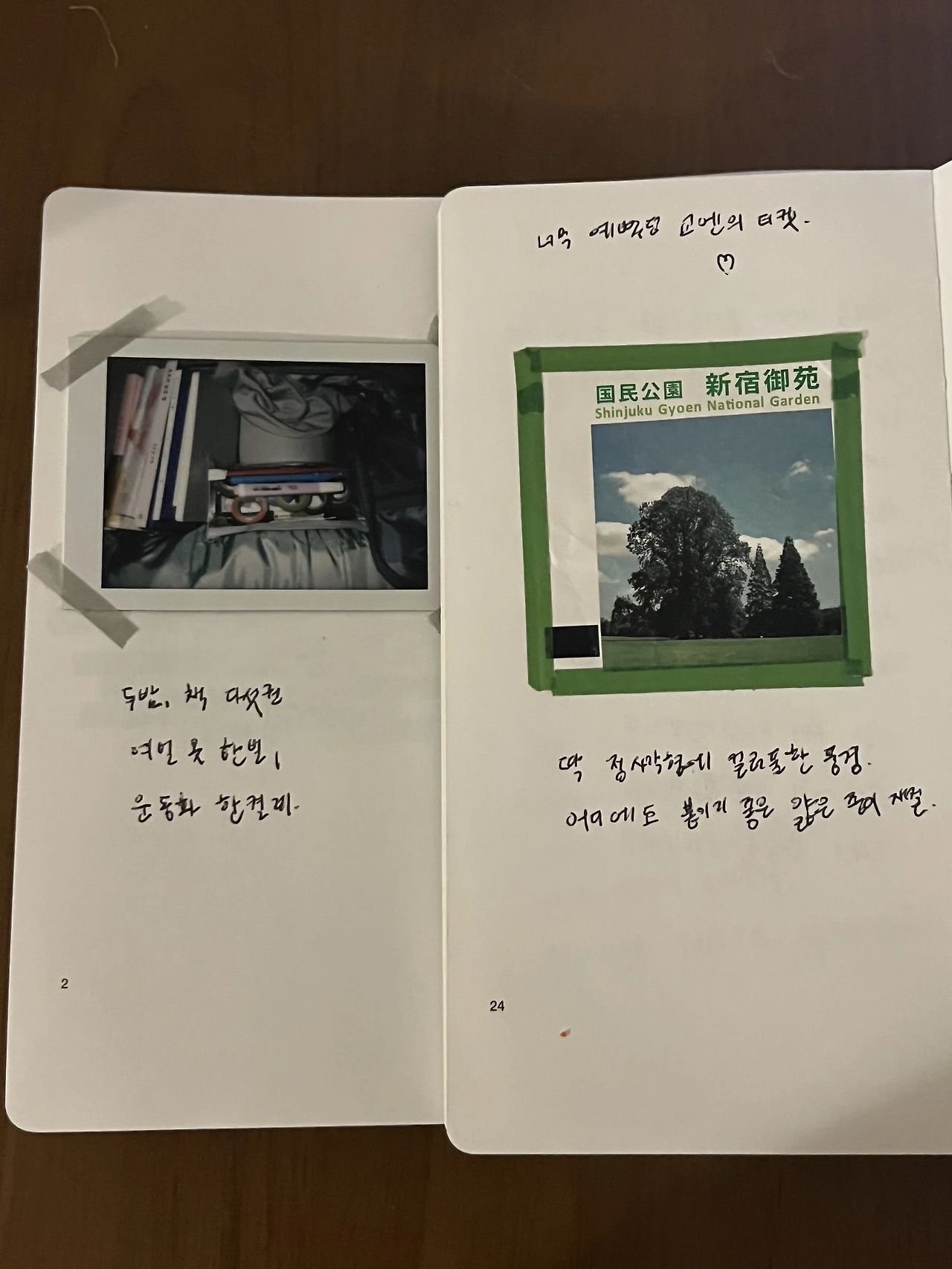 처음 가본 도쿄는 서울과 크게 다른 건 없었지만 묘하게 단정한 분위기는 도시 안으로 자꾸만 사람을 끌어들이는 힘이 있었다. 재즈 공연을 비롯해 친구가 꼭 가보라던 커피숍과 레코드숍, 서점에 공원까지. 나는 계획한 대로 장소를 이동할 때마다 즉석 사진을 남기고, 일어 영수증을 모으려 괜히 자주 쓰지도 않을 물건을 사보기도 했다. 도시가 달아나는 것도 아닌데, 때때로 기록하는 일에 조바심이 나 종종거리기는 기분이 들기도 했지만 아무렴, 나는 혼자 낯선 곳에 와있다는 사실 자체로 들떠 있었다. 서울과 아주 먼 도시는 아니지만, 해방감에 활력이 돋는 게 느껴질 정도. 어느새 노트는 즉석 사진으로 빵빵해졌다.
