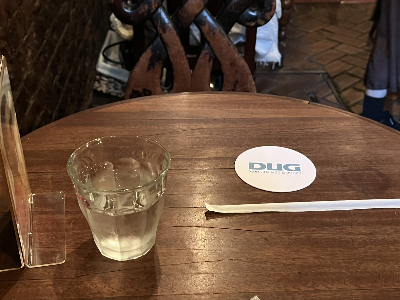오후 다섯 시가 되자 지상으로 올라가는 계단으론 입장을 기다리는 손님들이 하나 둘 줄을 선다. 나도 저녁에 예약한 공연에 늦을까 서둘러 나갈 준비를 한다. 기념품을 팔면 좋을 텐데, 그때 마시던 잔을 깔고 있던 종이 재질의 원형 코스터가 눈에 띈다. 간판과 같은 푸른 계열, dug라고 적혀있다. 이미 젖어 재사용도 어려운 상태, 점원에게 가져가도 되는지 묻자 흔쾌히 새것을 꺼내준다. 야호! 기쁜 마음에 '아리가또 고자이마스'를 반복해 마음을 표현한다. 계단으로 오르는 걸음마다 아쉬움이 뚝뚝 흐른다.