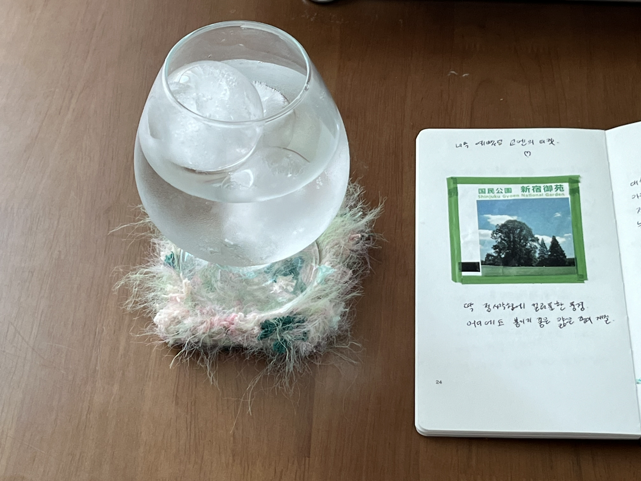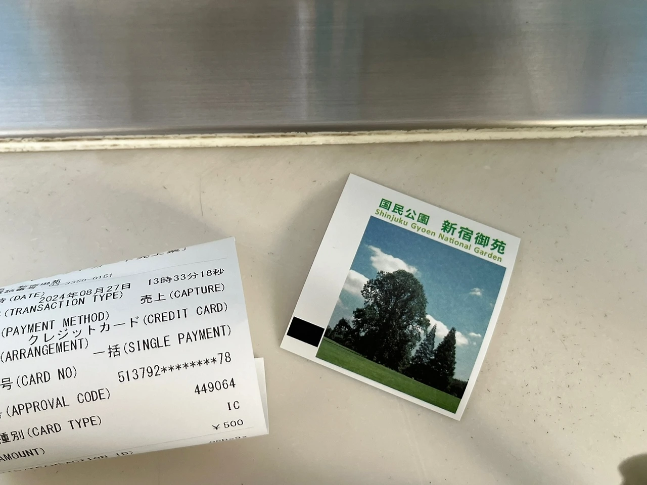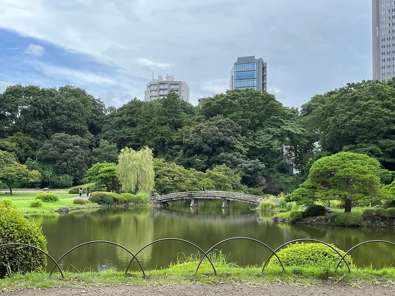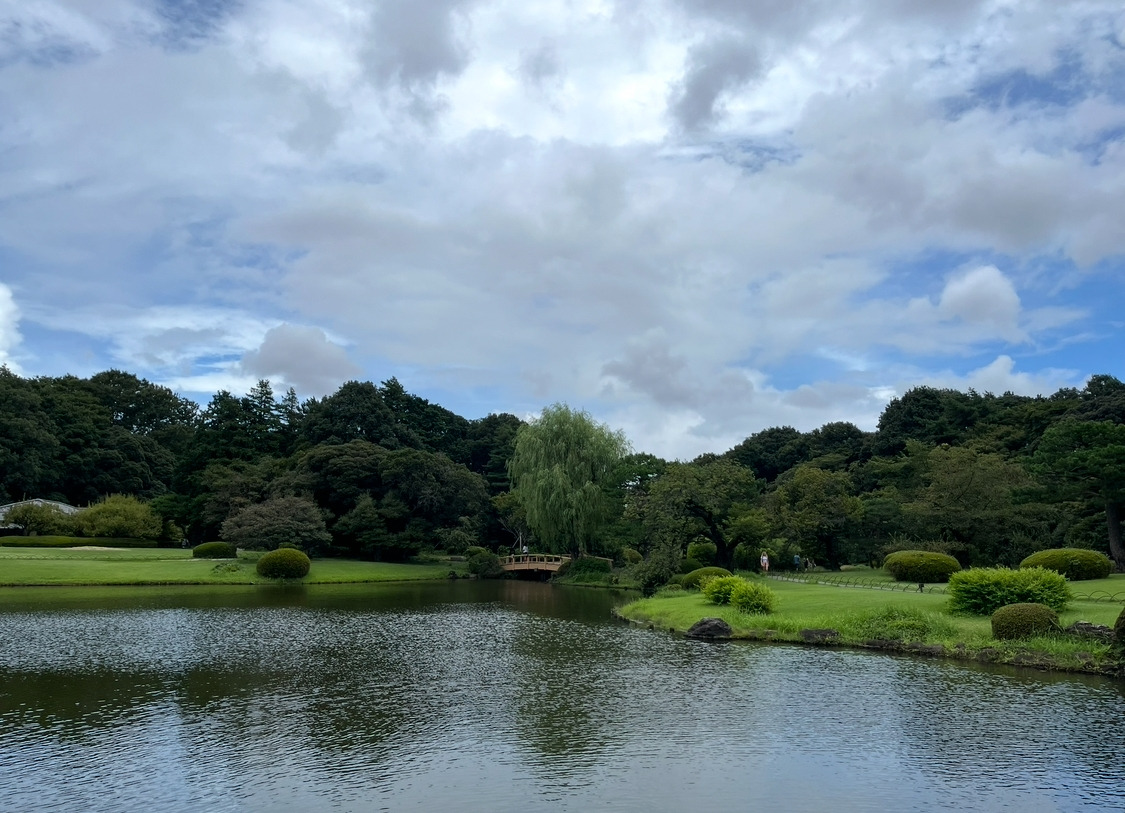 신주쿠 교엔(공원)의 티켓은 정사각 모양이다. 그곳의 풍경 사진이 박혀있어 얼른 일기장에 붙이고 싶어진다. 얇은 종이 재질이라 쉽게 찢어질 것 같아 바지 주머니에 소중히 넣었다. 날씨가 그다지 좋지 않은 평일의 공원엔 나처럼 여행 일정 타이밍 못 맞춘 관광객이 대부분이다. 첫인상은 관리가 잘 된 여름의 넓은 공원. 걸을 때마다 좋은 곳에 와있다는 자부심이 든다. 이곳저곳을 통과해 작은 정자에 도착한다. 여기서 바라보는 호수의 모습이 매우 아름다워 나도 다른 여행객 사이 자리를 잡고 앉는다.