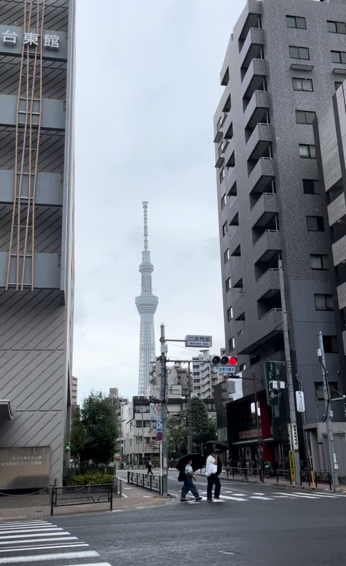 숙소에서 나와 햇빛을 정통으로 맞으며 우에노 역이 아닌 반대 방향으로 쭉 걷는다. 건물 사이 정면으론 키가 큰 탑이 보인다. 나는 탑과 점점 가까워진다. 영화에서 보았던 스카이 트리다! 지도엔 숙소가 있는 우에노에서 스미다 강이 보이는 아사쿠사까지는 걸어서 삼십 분이라고 안내되어 있다. 뙤약볕을 피해 지하철로 이동할 수도 있지만 오늘은 굳이 길을 걸으며 공상을 즐기고 싶다. 더운 날씨지만 그런대로 걸을만하다.