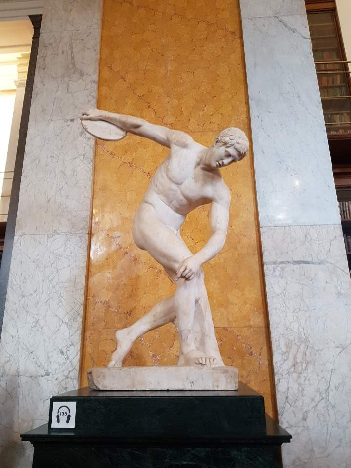워낙 방대한 유물들이 있기에 쭉 훑어볼 수 있게 도와주는 둘러보기 메뉴를 선택했다. 순서대로 유물들을 보기 시작했다. 첫 번째 전시관인 계몽주의 시대로 들어갔다. 해당 전시관에서 인상 깊게 본 것은 런던 올림픽에 나왔던 원반 던지는 사람이었다. 기원전 460년쯤 그리스 조각가 미론이 청동으로 만들었다고 하며 지금은 그 청동 원작은 전해지지 않고 로마 시대 때인 2세기쯤 이 원작을 그대로 대리석으로 모방해 만든 작품만 전해지고 있다고 한다. 처음에는 낯익은 작품이라 유심히 보았는데 오디오의 설명을 덧붙여서 쓰자면 이 작품이 대단하게 평가되고 있는 이유는 생동감 넘치는 표현 때문이다. 원반을 막 던지려는 사람의 힘줄을 표현한 듯한 근육과 힘이 들어간 발가락의 표현 등 정교한 부분들로 인해 후세에도 전해지는 것 같다. 이 전시관에서는 개인적으로 흥미로운 작품이 많이 있지 않아 이집트 전시관으로 넘어갔다.