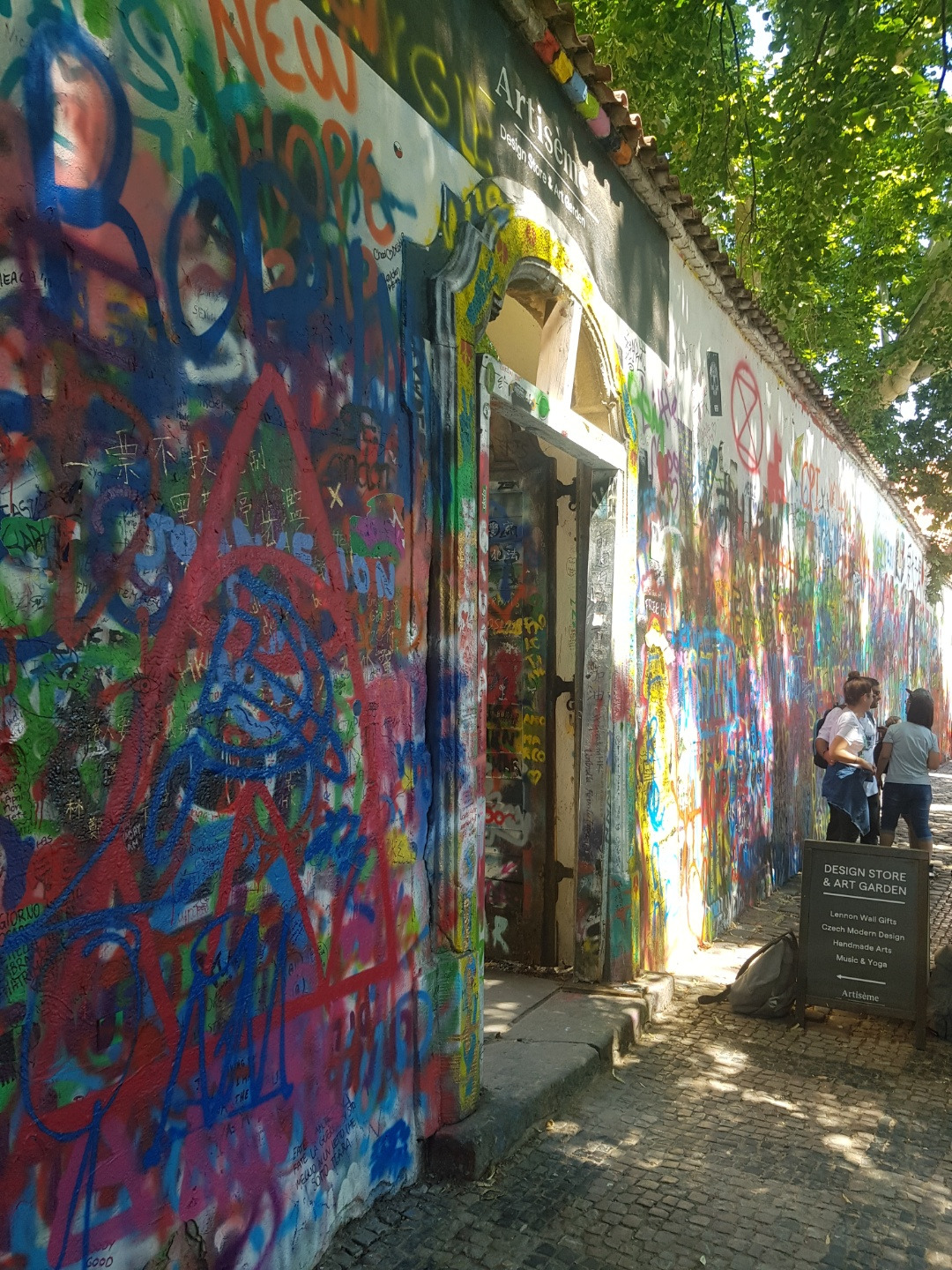 비틀스의 멤버 존 레논 벽은 평화의 벽으로 상징된 만큼 많은 사람들의 손길로 채워졌다. 체코의 행위예술가 그룹에서 하얀 페인트로 뒤덮였으나 다시 사람들의 낙서와 그림들로 채워졌다고 한다. 벽 한편에 글을 남기고 싶었으나 펜이 없어 낙서를 하지는 못했다. 사람들의 손길을 환영하기에 이 벽을 보러 가는 자가 있다면 필자 대신 펜을 들고 자신의 뜻을 남겨주기를 바란다. 벽 앞에서 친구와 함께 사진을 찍고 바출라프 광장 쪽으로 넘어갔다.