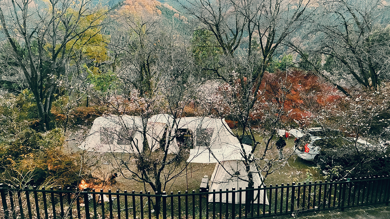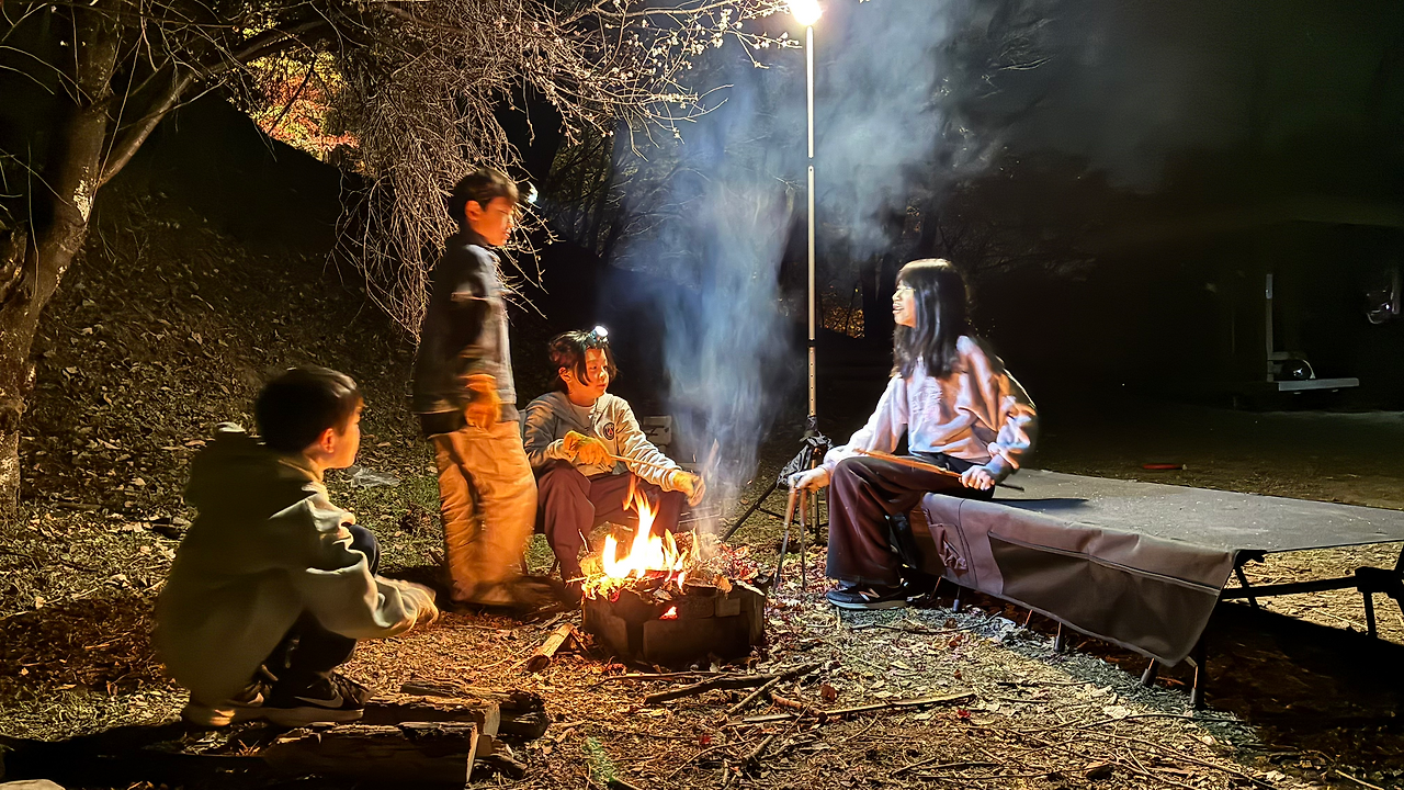 작년 5월, 골든위크 때에도 이곳 캠프장에서 2박 3일 캠핑을 했었다. 그땐 후유자쿠라가 아닌 봄의 완연한 사쿠라가 피어 있었고 흩날리는 벚꽃 잎이 막 찍어도 인생샷을 만들어 주었다. 게다가 이곳 캠프장은 부지런히 예약만 빨리 한다면 제법 넓은 광장의 전체를 카시키리(貸切:통째로 빌리는 것의 개념)할 수 있기에 우리만의 프라이빗한 공간을 만들어 낼 수 있는 장점이 있다. 이번 캠핑도, 큰 형님의 기획력과 추진력 덕분에 같은 광장을 카시키리 할 수 있었고, 우리 세 가족만의 안전하고 프라이빗한 캠핑 사이트를 구축할 수 있었다.