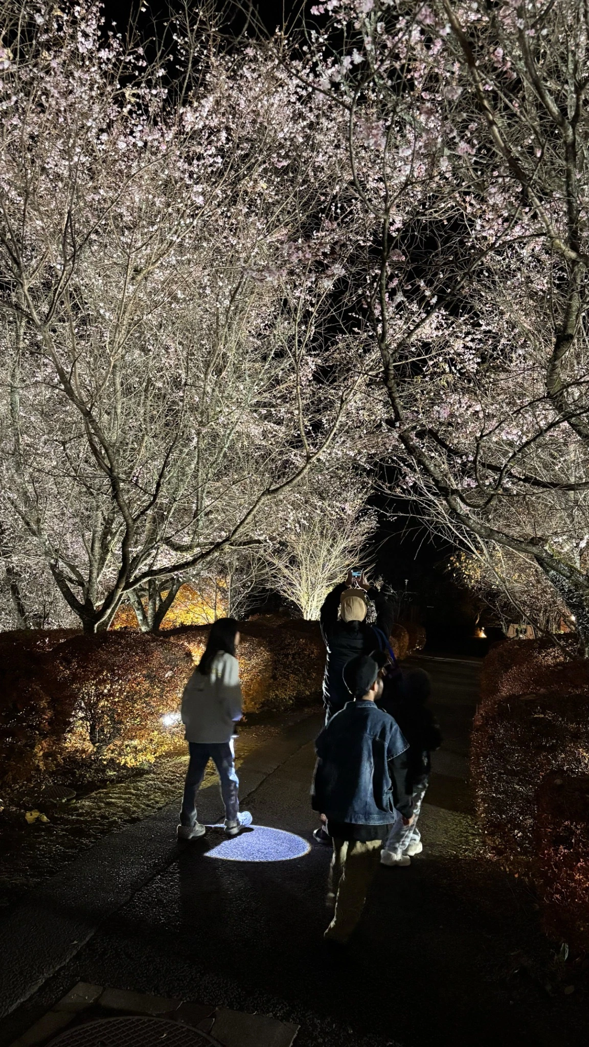 도착하여 우리만의 집을 구축하고 맛있는 음식을 나누며 이야기 꽃을 피우다 보니 어느덧 해가 뉘엿뉘엿 지기 시작했고 공원 내 산책로에는 적절한 라이트업으로 만연한 단풍과 후유자쿠라를 동시에 즐기며 눈에 담아낼 수 있도록 아름다움을 뽐내 주었다.