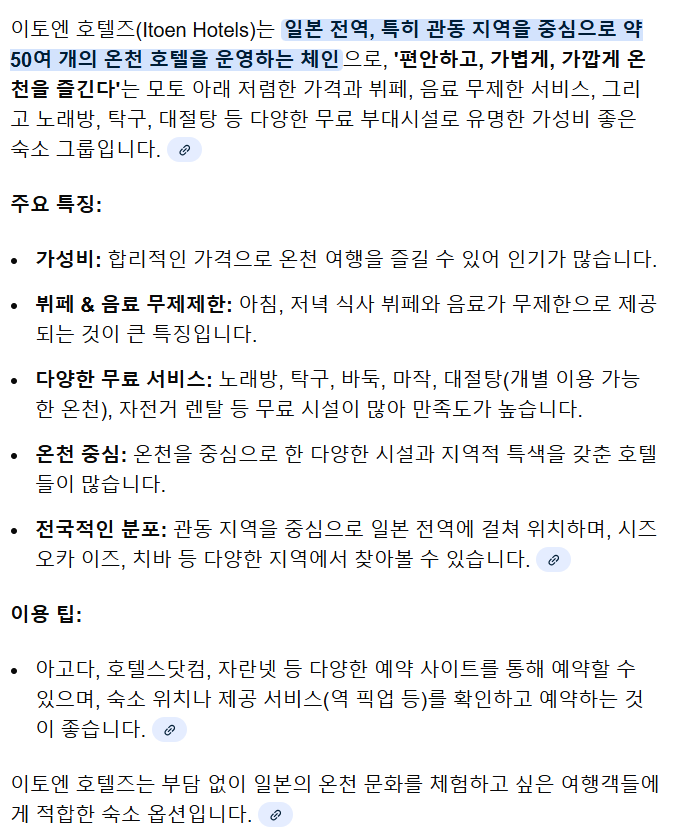 우리의 숙박시설인 뷰 호텔도 그중 하나인데, 뷰 호텔은 일본의 이토엔 호텔즈(Itoen Hotels)가 사들여 호텔체인으로 운영하는 곳으로, 시설은 낙후했으나 싼 가격과 온천, 가성비 석식 등 나름의 차별점을 무기로 매년 만실을 채우고 있는 곳이다.(출처:Google)