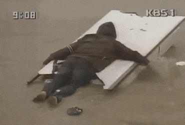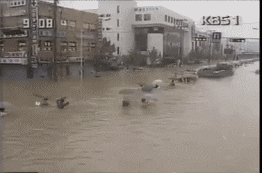 나의 철없고 깜찍한 기도는 하나님께 가볍게 무시됐다. 그리고 그날 저녁, 인터넷에서 ‘이쯤 되면 꼰대인 것 인정해줘야 할 것 같은 80년대 태풍 당시 출근길'이라는 제목의 글을 봤다. 눈을 의심했다. 홍수로 가슴까지 잠긴 도로, 사람들은 보트를 타고, 떠내려 온 가구를 타고, 혹은 물길을 가르며 출근하고 있었다.