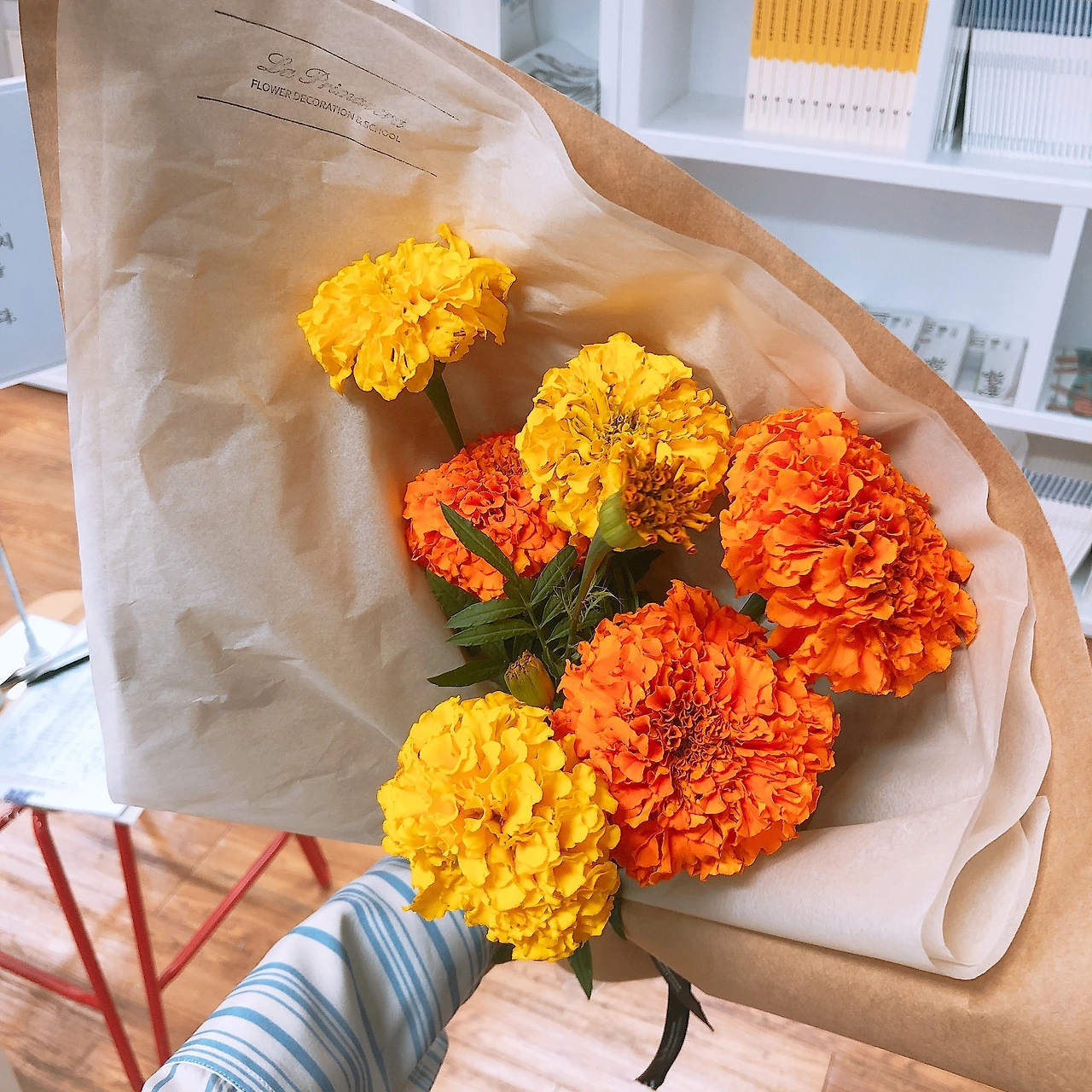 회사 근처에 꽃집이 있다. 내일 퇴근길엔 결국 어른이 된 나에게 오렌지색 메리골드를 선물해야겠다. 메리골드의 꽃말은 '반드시 오고야 말 행복'. 뭐든 먹어도 되는, 자유할 주말까지 반드시 행복하기를, 평일을 부디 버리지 말고 잘 살아내기를, 꽃 한 송이가 위로가 되기를. 눈 감으며 내일의 나를 위한 기도를 드린다.