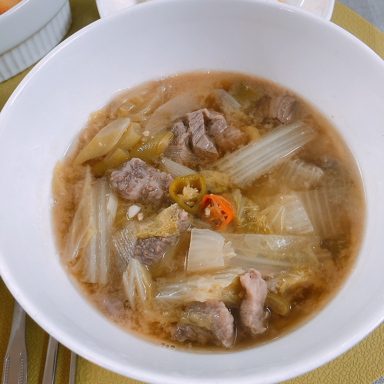잠시 생각났다가 금세 잊혀서 해먹을 일은 없었는데, 오늘은 유난히 그 그리움이 콕콕 박혔다가, 주위를 맴돌고 때를 쓰니 도리가 없었다. 결국 소고기 배추 된장국 재료가 상에 올랐다.