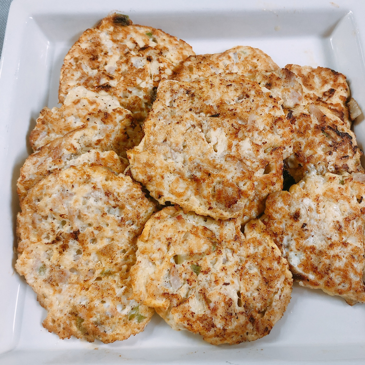 재료 : 두부 한 모, 참치 캔, 양파(1/3), 대파, 후추, 소금, 달걀 3알