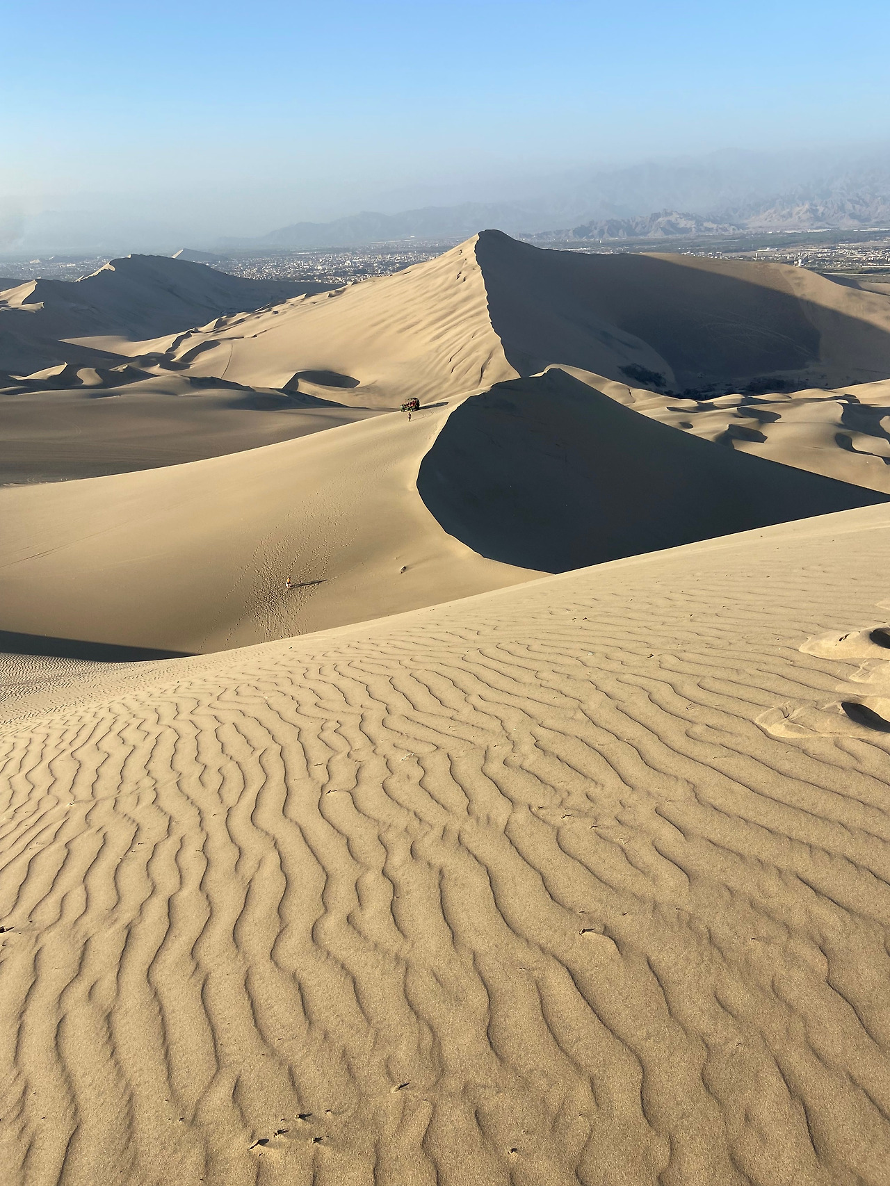 생각에 늪에 빠졌을 때 창밖으로 알록달록한 작은 건물들을 발견했다. 이카에 도착했다. 또다시 택시를 타고 오아시스 마을인 와카치나로 이동했다. 햇빛이 쨍쨍한 사막의 모래들이 반짝였다. 매끈해 보이는 사막 표면에 발을 넣으면 블랙홀처럼 발이 푹 빠져 들어가 헤어나오지 못할 것 같았다.