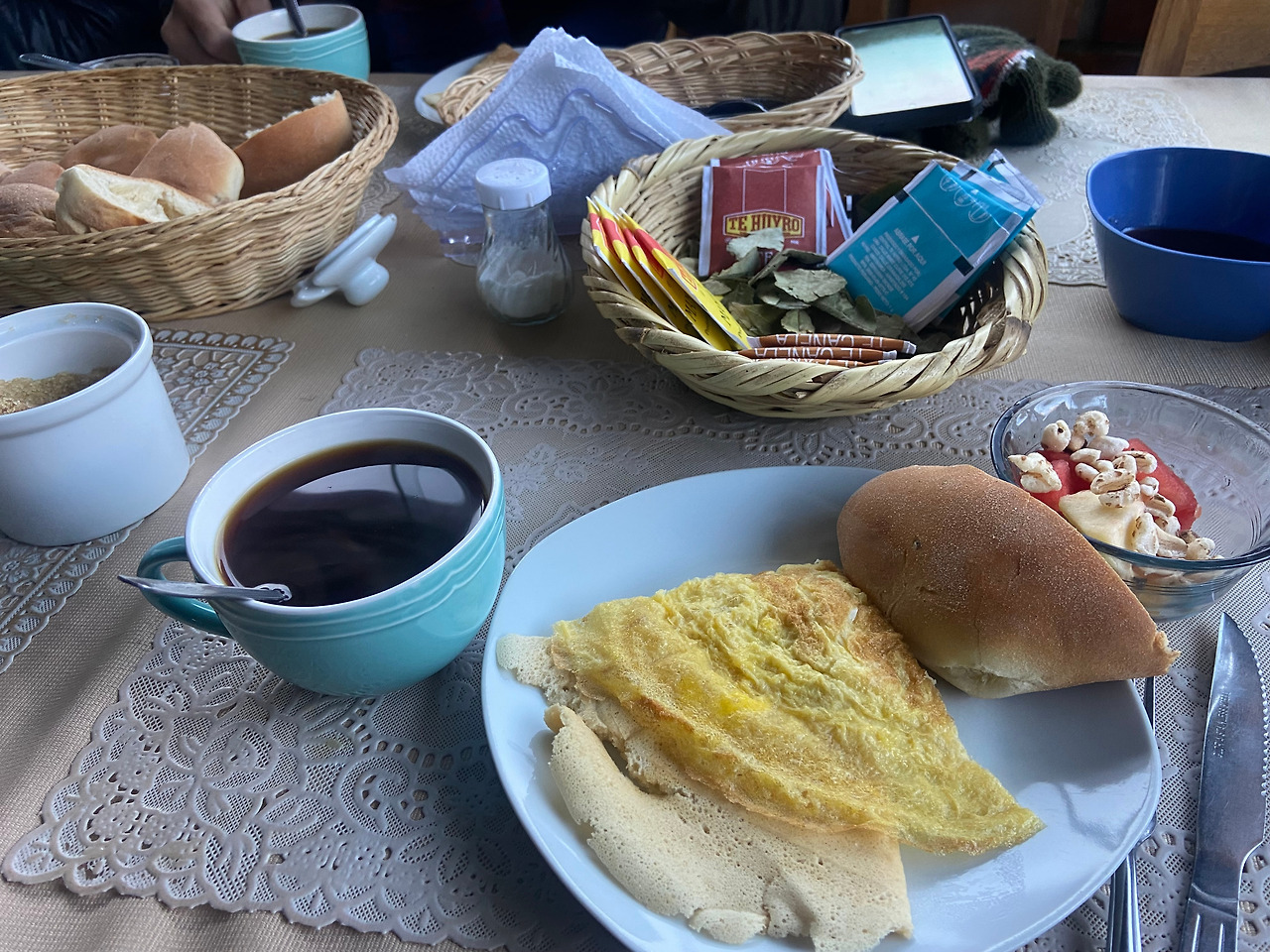 분명 등산이 끝나고 뷔페식을 먹었다. 이동길엔 페루 빵인 "츄타"를 먹었다. 화려하기보단 담백한 맛에 이끌려 심심할 때마다 뜯어먹었다. 그럼에도 도착해서 자고 일어나니 다시 배가 고팠다.