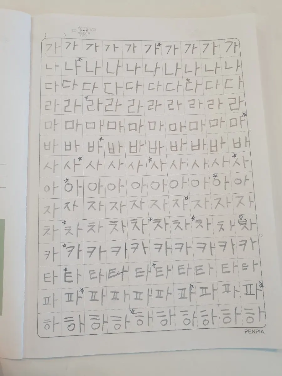 지금 와서 생각하면 좋아하는 그림책을 필사하는 것으로 글씨 쓰기 연습을 해도 좋았을 것 같다. 지루하게 가, 나, 다, 라.. 를 쓰게 했으니 아이가 싫어할만했다. 자음과 모음이 소릿값을 알고 한글을 읽는 원리를 가르쳐주고 싶었던 건데 욕심이 앞섰다. 그리고 쓰기보다 읽기가 먼저인데 읽기도 잘 안 되는 친구에게 쓰기까지 가르쳤으니 아이가 힘들었을 것이다.
