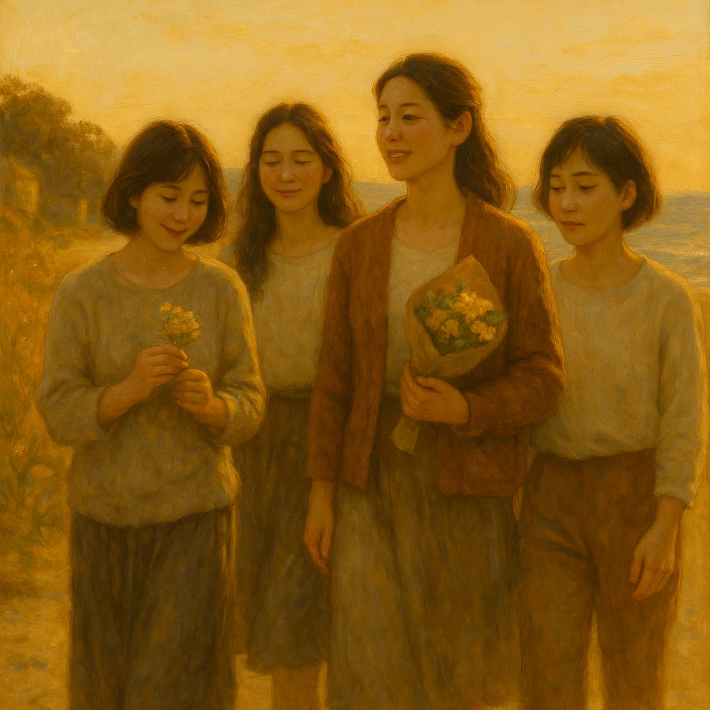 작은 꽃다발 하나에 네 사람의 마음을 담았다.