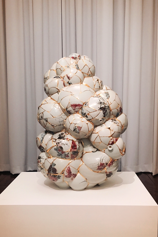 도자기를 깬 후, 그 파편들을 ‘탈 도자기’ 형상으로 재탄생시킨 작품이다. 파편들을 잇고 붙이는 작업을 통통 죽은 것을 새로운 것으로 살리는 과정을 상징화 하였다고 한다. 다소 난해한 모양이지만 해설을 보고 나니 작가의 의도가 너무나 분명하게 다가왔고, 기억에 남는 작품 중 하나이다.