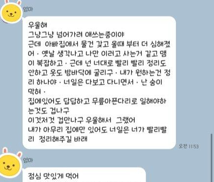 그렇게 몇 시간 뒤 엄마에게 답장이 왔다. 참으로 미안했다.