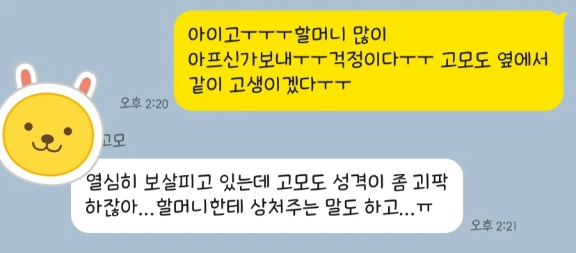 "할머니, 곧 수술하신대. 설날에 찾아뵙지 못할 테니 이번엔 갔다 오자."