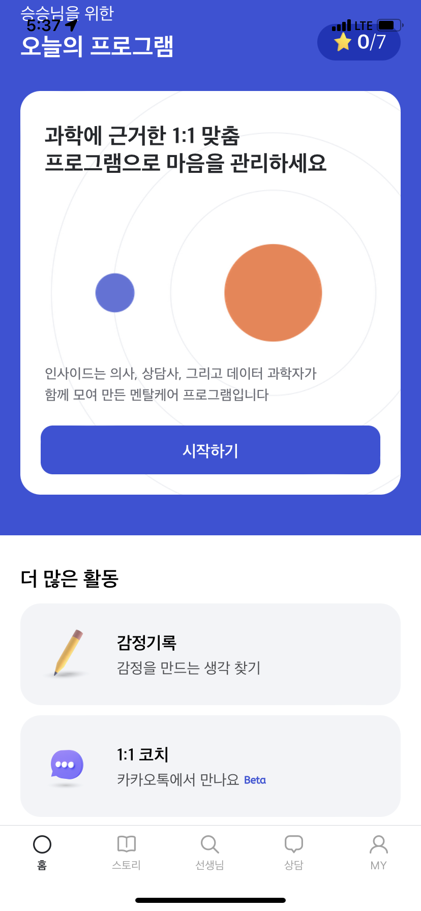가끔 이메일로 브런치 관련해서 소소한 제안들이 오고는 한다. 책 서평을 부탁하거나, 인터뷰를 요청하는 일들이다. 평소 나는 내 신변을 노출시키는 게 싫어서 모두 거절했다. 그러던 중, 한 이메일의 제안을 덜컥 수락해버렸다. 비대면 심리상담 앱인 '인사이드'를 사용해보고 인터뷰하는 일이었다. (브런치에 글을 작성해달라는 내용은 없었다. 순전히 앱을 사용한 후 만족해서 작성하게 되었다.)