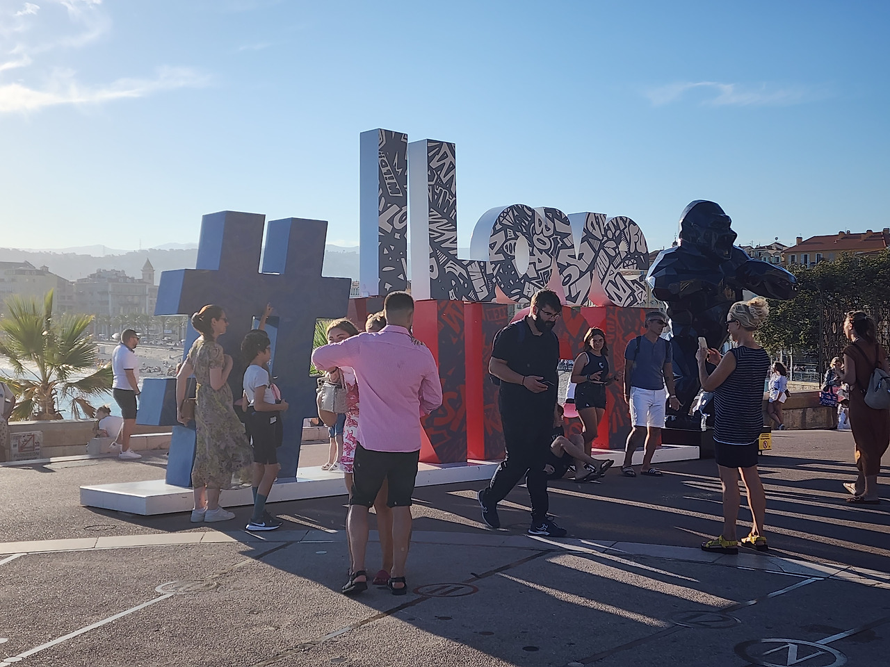실컷 전망 관람을 마치고 다시 바닷가쪽으로 내려왔다. '아이 러브 니스(I LOVE NICE)' 조형물이 있었는데, 도대체 그 옆에는 왜 킹콩이 같이 있었을까? 이건 좀 의아했다. 그래도 멋진 풍경을 보고 내려와 해변가에 앉아 시원한 바닷 바람을 맞으면서 도란도란 얘기하고 있으니 이 또한 행복이었다.