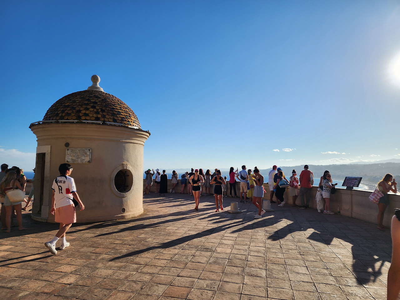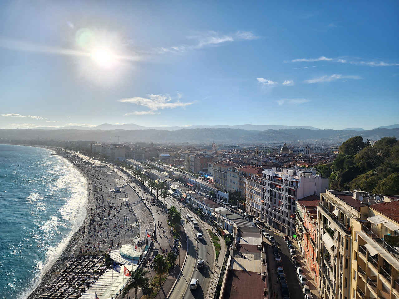 어쨌든 도착한 전망대. 그리고 펼쳐진 환상적인 오션뷰. '명불허전'이란 사자성어가 딱 들어 맞았던 멋진 전망대였다. 가까이에서 지중해 바닷가를 봤을 때와는 또 다른 감동이었다. 그리고 해안선뿐만 아니라 고개를 살짝 오른쪽으로 돌리면 보이는 남프랑스 도시 특유의 시티뷰도 상당히 멋졌다.