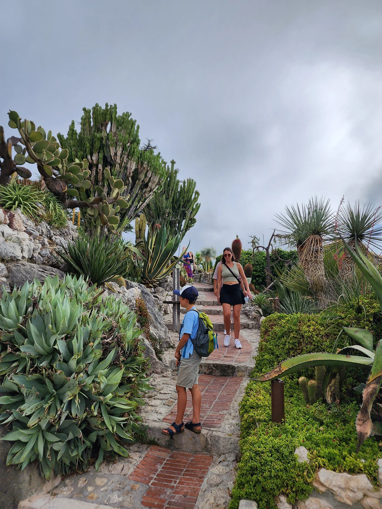 특이한 선인장들의 향연, 크기도 제 각각 형태도 제 각각이었다. 그렇지 않아도 에즈빌리지 마을 자체가 해안선 고지대에 있는데, 어떻게 여기까지 이 많은 선인장을 옮겨 심어 정원으로 가꿨을까? 작은 선인장뿐만 아니라 큰 선인장도 많고, 바위 틈새에 많이 심어져 있어 놀라움의 연속이었다.