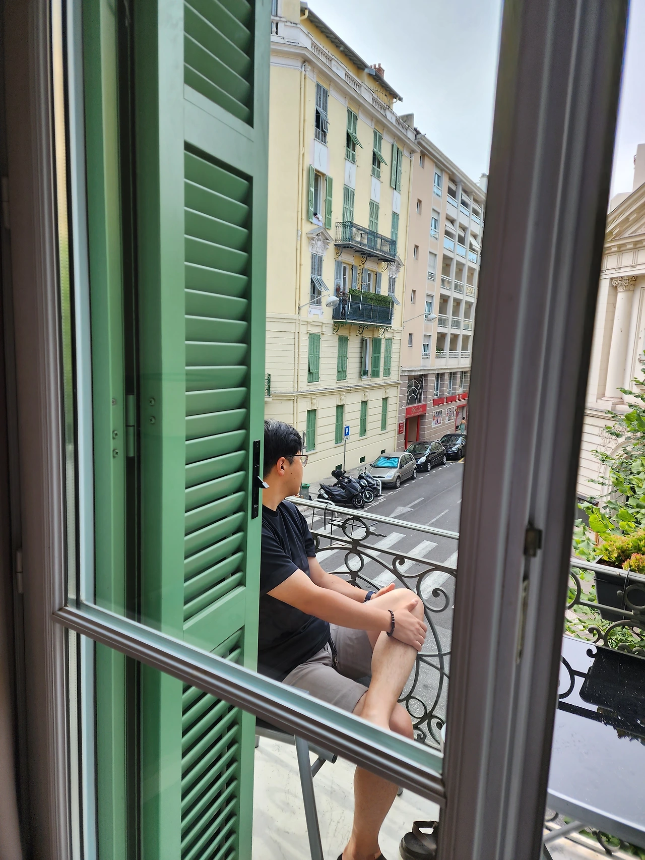 이런 것들을 돌이켜봤을 때, 우리만큼 걸으면서 카페에서 식당에서 숙소에서 많은 이야기를 나눴던 가족이 있었을까 싶다. 마지막으로 니스 코트다쥐르 공항으로 향하는 픽업 택시를 타기 전에 사진과 같이 니스 숙소 테라스에서 여러 가지 많은 생각이 불현듯 떠올랐다.