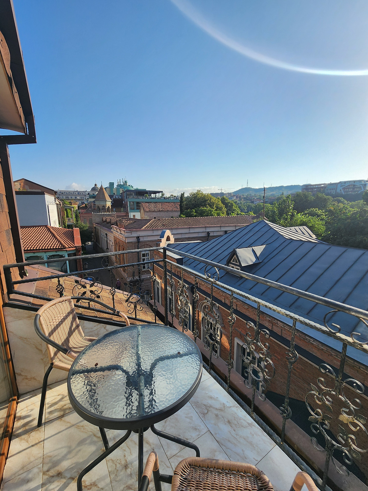 저는 테라스를 좋아해서 일부러 테라스가 있는 숙소를 최대한 많이 예약했는데요. 처음 트빌리시에 도착하고 구시가지에 자리 잡은 숙소에 체크인을 마친 다음 테라스 창문을 열었는데요. 사진에는 나오지 않았지만, 테라스 야외 테이블 한가운데 재떨이가 있었습니다.