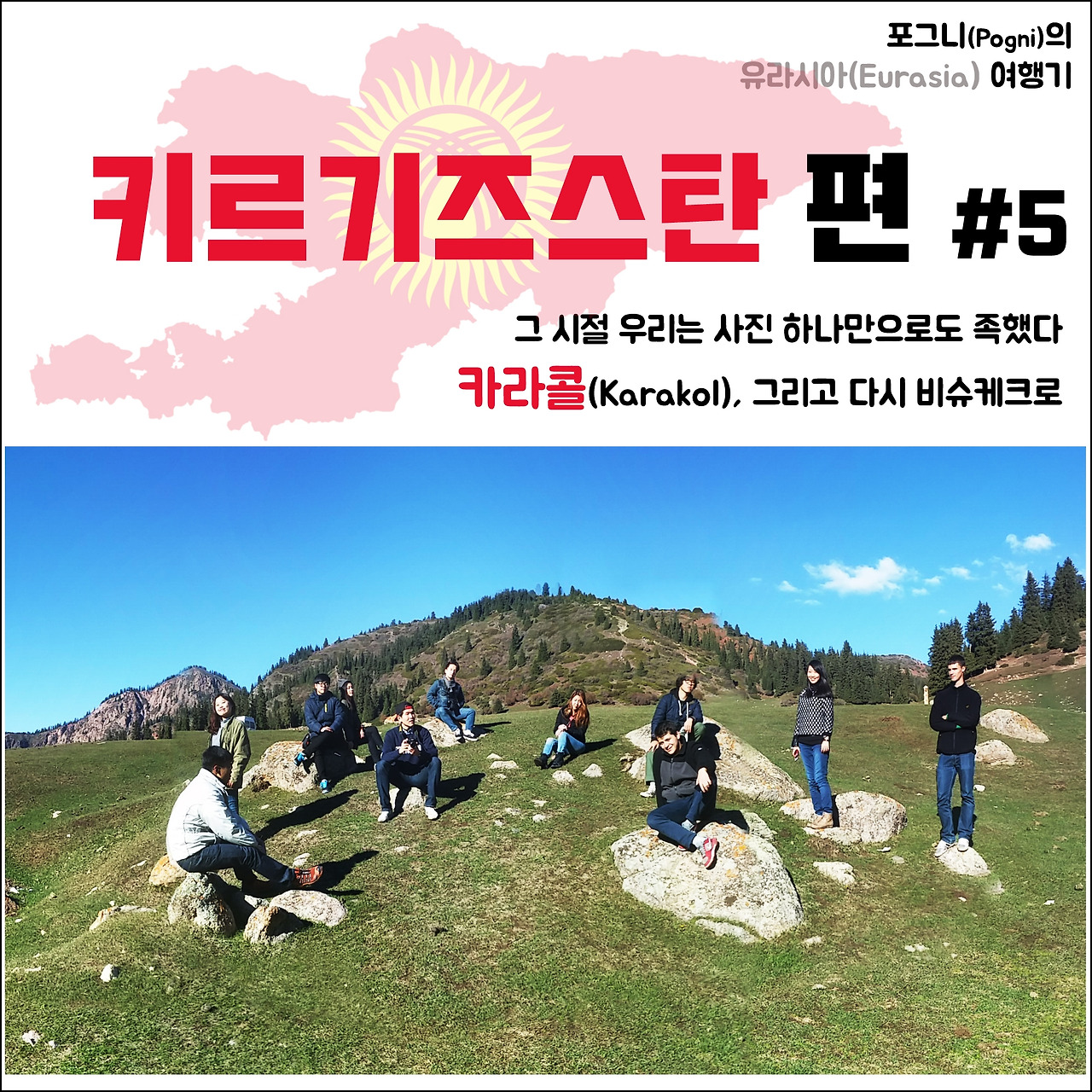 우리는 여기서 마지막 단체 사진을 찍었다. 4개국 청년들이 모여 떠났던 미지의 세계 키르기즈스탄 여행. 아직 비슈케크 시내 여행이 남아 있었지만, 우리는 정들었던 키르기즈스탄 자연과의 작별 인사를 각자 준비하고 있었다. 각자 컨셉을 잡고 촬영에 들어간다. 당시 나는 갤럭시 s5 폰을 쓰고 있었는데, 360도 촬영 기능을 통해 최대한 크게 우리와 풍경을 담아봤다. 다 찍을 때까지 움직이지 말았어야 했는데, 한 명이 움직였나보다. 사진을 자세히 보니 Jesus 헤어스타일 친구의 머리가 잘렸다. 하필 잘려도 왜 머리가 잘린 걸까? 안타깝다. 해가 지기 전 즐거운 한때를 보내고 이젠 진짜 비슈케크로 다시 돌아갈 시간이다. 아쉽다. 아쉬운 마음을 달래기 위해 노을을 배경으로 동영상을 담아본다. 언젠가 다시 만날 수 있을까? 다시 간다면 더 재밌게 즐길 수 있을 것 같은데 말이다. 숙소로 돌아가 저녁을 먹으면서 각자 느낀 감정을 진솔하게 풀어본다. 점점 밤은 깊어가는데 잠들고 싶지 않은 키르기즈스탄의 마지막 밤이다. - 끝 -