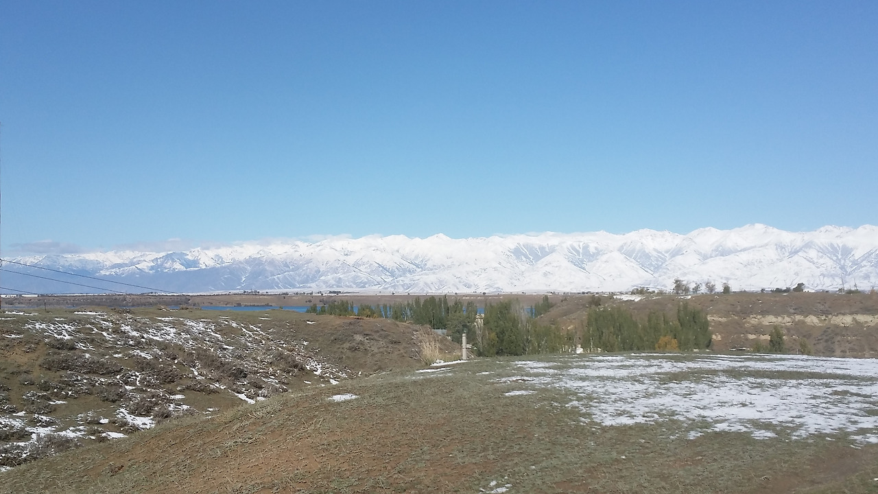 조금은 이 박물관에 대해 실망스러웠던 나는 별 기대를 하지 않고 천천히 걸어간다. 그곳은 전망이 탁 트인 언덕이었다. 언덕 뒤로는 웅장한 천산산맥의 설산이 병풍처럼 펼쳐져 있었다. 나도 모르게 그 모습에 감탄해 풀썩 주저앉았다. 말로 표현할 수 없을만큼 웅장했다. 카자흐스탄 챠른 캐년에서 봤던 대자연보다 더 거대한 대자연이랄까? 사람이 손이 닿지 않은 무위자연(無爲自然)에 나도 모르게 물아일체가 된 것 같다. 그 자리에 얼어붙어 사진을 수십 장 찍었지만, 카메라로는 전혀 담을 수 없는 장관이다. 왜 그 옛날 선비들이 벼슬 등 부귀영화를 버리고 자연에 묻혀 살고 싶어 했는지 간접적으로 느껴본다. 'Nature is the art of God.(자연은 신의 예술품이다)'란 문구도 떠오른다.