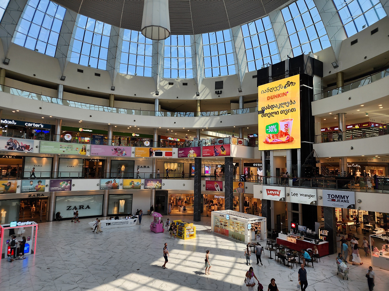 수도 트빌리시의 대표적인 쇼핑 공간은 두 군데가 있습니다. 하나는 도시 북쪽 끄트머리에 있는 조지아에서 가장 큰 쇼핑몰인 트빌리시 몰, 또 다른 하나는 자유광장 근방 루스타벨리 거리 초입에 있는 갤러리아 트빌리시 백화점입니다.