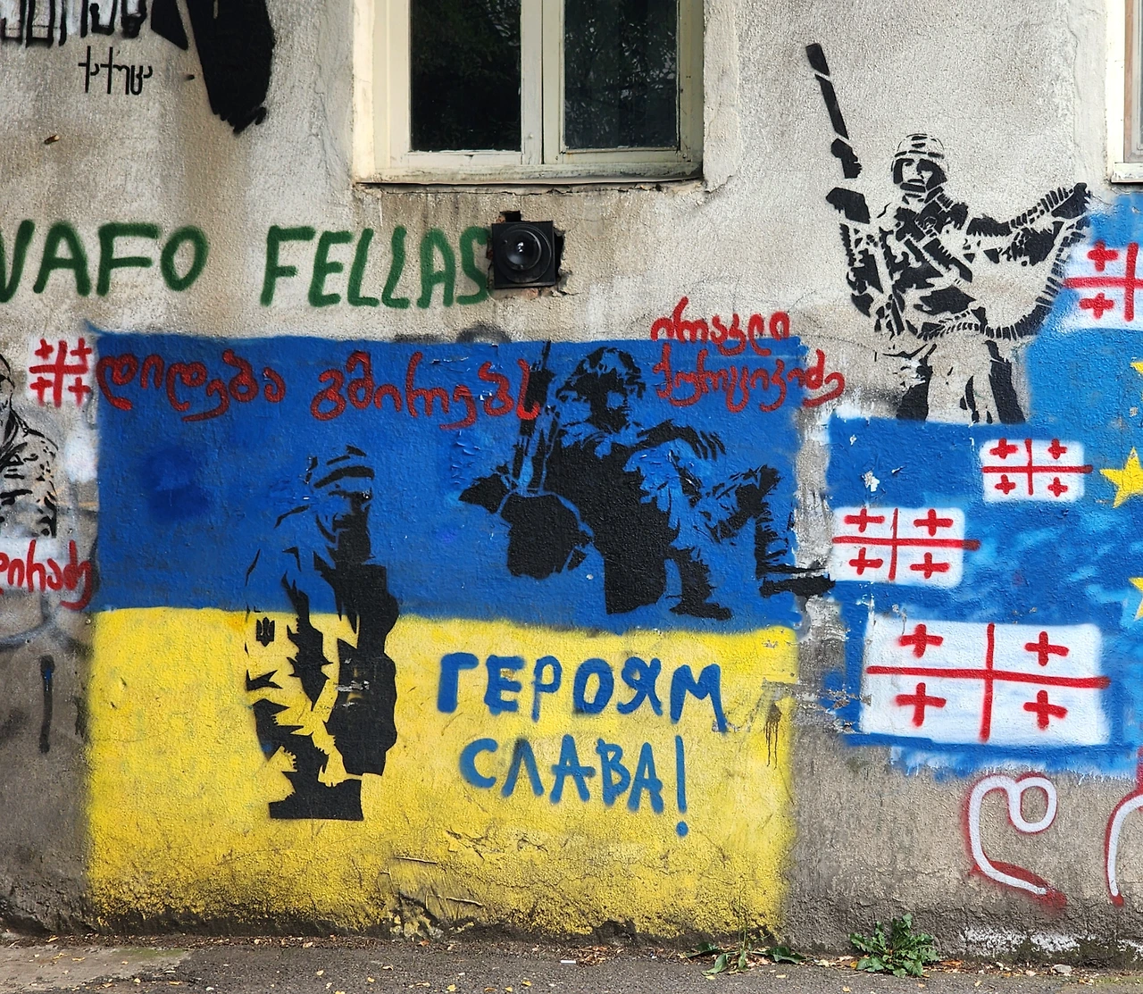 가만히 살펴보니 러시아·우크라이나 전쟁 관련하여 '우크라이나 지지'와 관련된 것들이 상당히 많았습니다. 골목 곳곳에서 어렵지 않게 찾아볼 수 있었는데요. 친러 성향의 정당이 정권을 잡은 상황을 반증하는 모습이기도 했습니다.