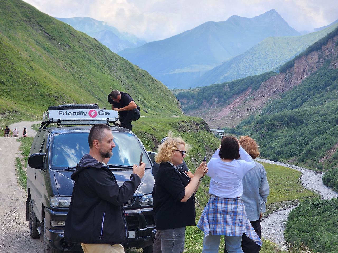 잠시 함께 투어를 다녀왔던 멤버들을 소개하자면, 조지아인 가이드 Goba와 드라이버 2인 + 러시아 인스타그램 인플루언서 1인 & 러시아 화장품 무역 회사 직원 2인 + 중년의 리투아니아 부부 2인이었죠.