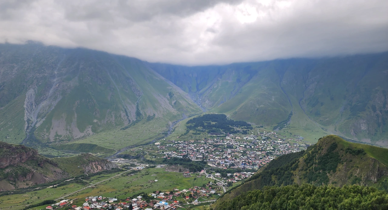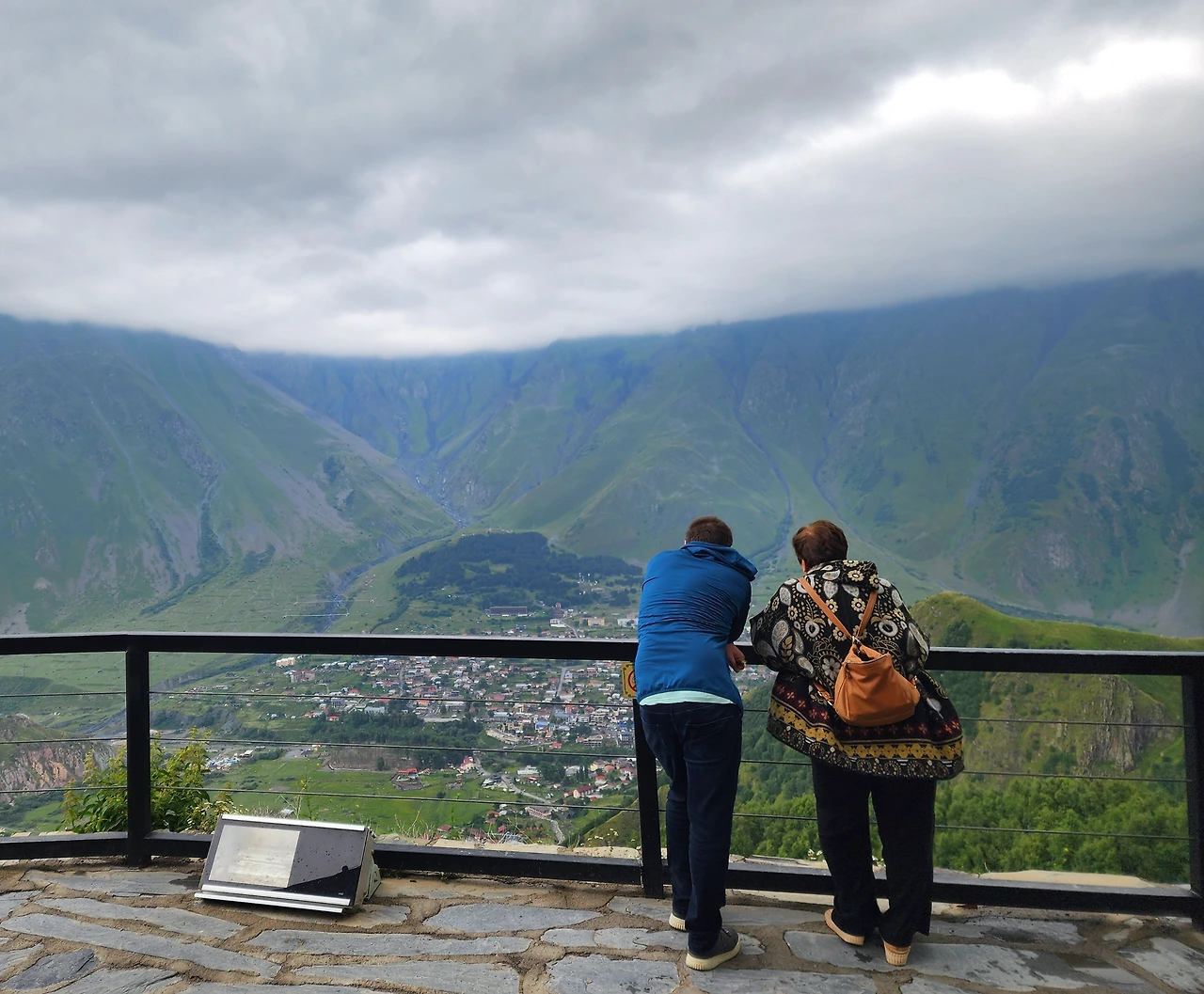 하지만, 일단 교회에 올라가니 예상하지 못한 환상적인 전망을 볼 수 있었는데요. 게르게티 교회에서 내려다본 카즈베기(스테판츠민다) 시내 광경은 이번 조지아 여행에서의 최고의 순간 중 하나였습니다.