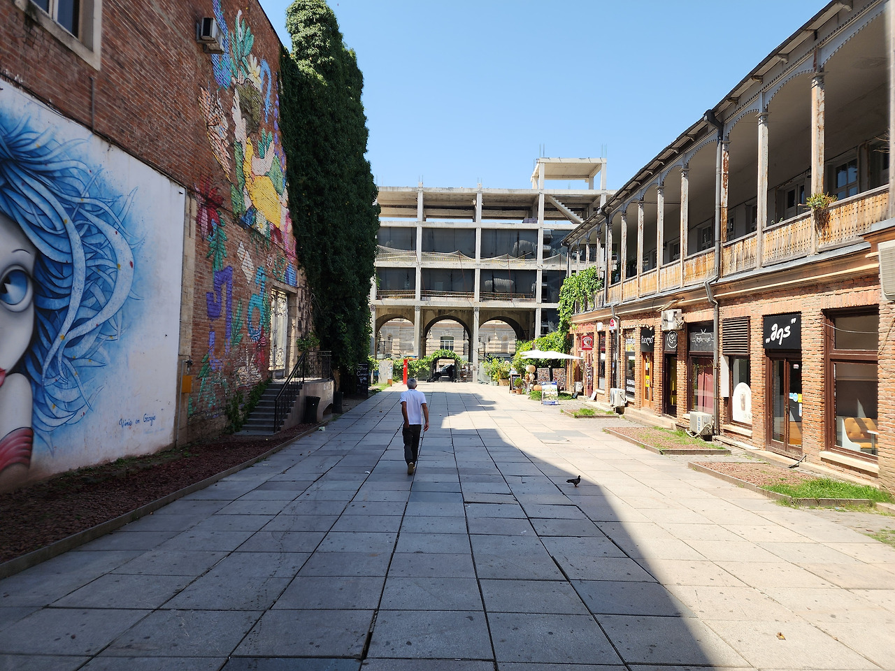 이곳은 또 다른 이 도시의 명물은 White Bridge를 방문하기 위해서 거쳐가야 하는 골목인데요. 골목 왼편에는 벽화가 오른편에는 상점 건물이 있었습니다. 참, 여기서 하나 꿀팁은 이쪽 상가에 기념품 상점 하나가 있는데 쿠타이시에서 가장 괜찮은 기념품점이었어요!