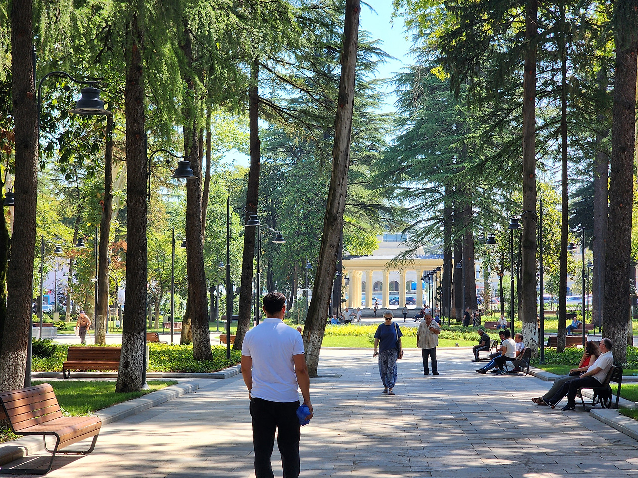 그래서 점심 식사를 하기 전, 잠시 쉼표를 찍기 위해 현지인들의 쉼터 쿠타이시 중앙공원에 방문했습니다. 40도에 가까운 날씨였지만, 수령이 오래된 거대하고 울창한 수목이 만들어내는 시원한 그늘이 있어 오랜 시간 벤치에 앉아있을 수 있었죠.