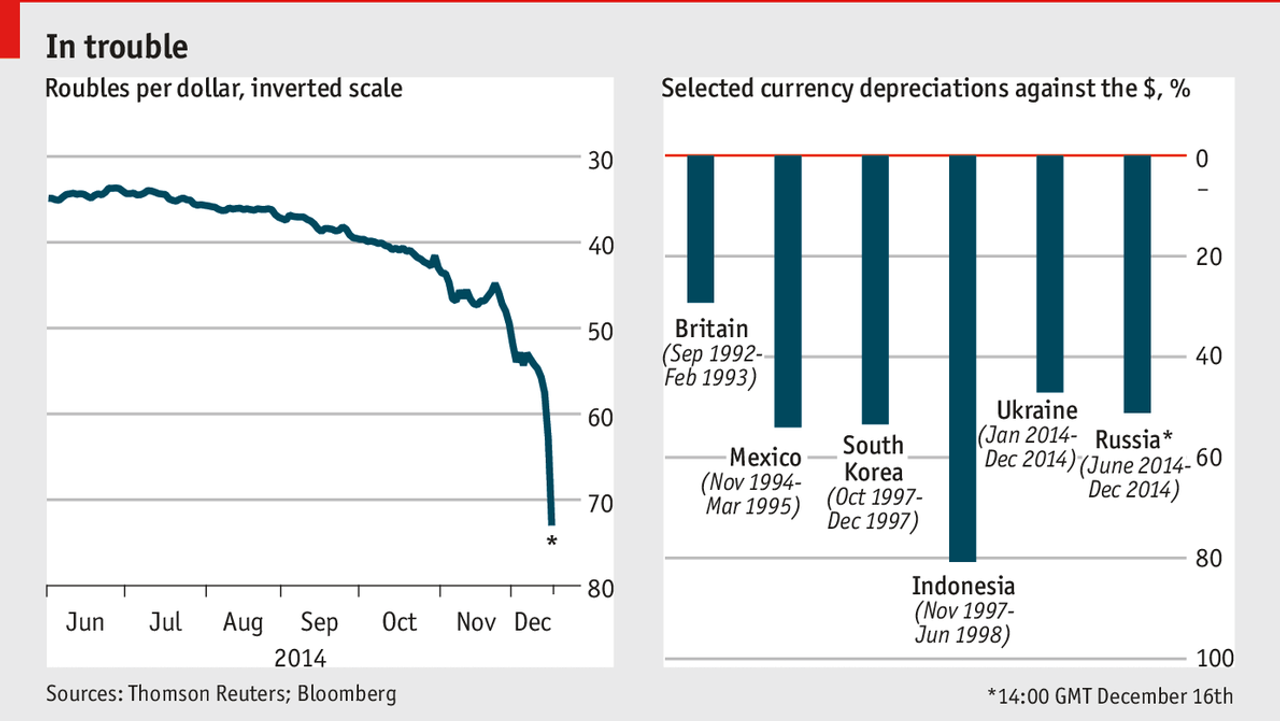 나는 몰랐다. 내가 러시아란 나라를 여행할 줄은. 그리고 너무 좋아서 두 번이나 가게 될 줄은. 기회는 기다린다고 오는 게 아니다. 찾아야 그것을 만들 수 있다. '14년 11월 러시아 루블화 폭락은 나를 상트페테르부르크란 러시아 제2의 도시로 나를 이끌었다. '14년 3월 러시아의 크림반도 병합 이후 강대국 간의 아주 흥미로운 파워 게임이 지속되고 있었다. 천연가스라는 자원을 이용해 팽창하려는 러시아와 이를 제재하려는 미국을 비롯한 서방 국가의 알력 싸움이 바로 그것이다. 러시아의 송유관을 통해 全 유럽에 천연가스가 공급되고 있기 때문에 이를 인질로 러시아 대통령 푸틴은 게임의 주도권을 쥐고 있었다. 하지만 미국에서 셰일 혁명이 일어나고 천연가스보다 저렴한 셰일가스가 저렴한 가격에 갑자기 대량으로 공급되자 대세가 미국으로 넘어가게 됐다. 러시아 화폐 루블화는 바닥이 어딘지 모를 정도로 가치가 떨어졌다. 종국에는 기존 대비 달러 대비 루블화 가치가 50%도 넘게 떨어졌고, 지금까지 회복되지 못한 채 지속되고 있다. 위의 표를 보면 우리나라 IMF 때 만큼 루블화 가치가 폭락했음을 알 수 있다.