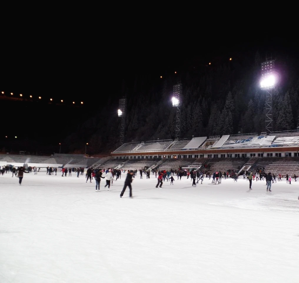 입구부터 남녀노소 할 것 없이 경기장은 수많은 인파로 가득했다. 이곳은 동계 아시안게임 당시 스케이트 주 경기장이었는데, 이상화 선수 등 우리나라 빙상계 슈퍼스타들이 이곳 스케이트 경기장을 누볐다고 생각하니 괜히 가슴이 벅차올랐다. 입장료는 1,800탱게(한화 약 10,800원)다. 장비는 별도 요금이 부과됐던 것으로 기억난다. 폐장 시간은 밤 11시까지이다. 이제 스케이트화를 빌릴 차례다. 신발 끈을 꽉 묶고 발목이 안 꺾이게끔 조심해서 빙상장 입구로 들어간다. 실로 어마어마한 규모다. 과장한 것 하나 없이 축구 경기장 크기와 비슷한 크기였다. 이전에 봉사활동을 하며 갔었던 고대 아이스링크장은 이곳에 비하면 어린아이 수준인 것 같았다. 갑자기 스케이트를 더 잘 타보고 싶은 욕구가 생겼다. 그래서 현지인 친구 아셈(Assem)과 유마(Yuma)에게 열심히 배워봤다.