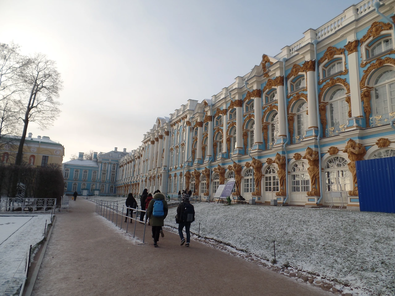 든든하게 먹고 이제 대미를 장식할 마지막 여행 장소로 떠나보자! 마지막 여행지는 '호박방'이란 소설책을 읽은 후부터 관심이 있던 곳. 진짜 호박방이 있는 제정 러시아 사치의 끝판왕 '예카테리나 궁전'으로 떠나본다. 이곳은 마치 태양왕 루이 14세를 동경하는 것 같았던 제정 러시아 황실에서 베르사유 궁전만큼이나 사치스럽게 건설한 궁전이다. 황금빛을 띠는 모든 것들이 도금이 아니라 진짜 황금이라고 하는데, 일단 직접 가서 봐야겠다. 여기는 상트페테르부르크 시내에서 약 1시간가량 떨어져 있다. 지하철이 나름대로 발달한 빼쪠르인데, 만약 대중교통을 이용해서 가려면 지하철 마지막 역까지 와서 다시 버스를 갈아타야 하는 수고를 해야 한다. 당시엔 한국인에 대한 러시아에서 무비자 허용이 얼마 되지 않은 시점이라 정말로 가는 방법을 찾는데 애를 많이 썼다. 그런데, 밥을 먹고 나니 시간이 애매해서 단체로 택시를 타고 가서 이런 내 수고는 헛수고가 됐다. 물론 나도 편했지만 준비한 것이 물거품이 되는 순간의 허무함이란 이루 말할 수 없다.