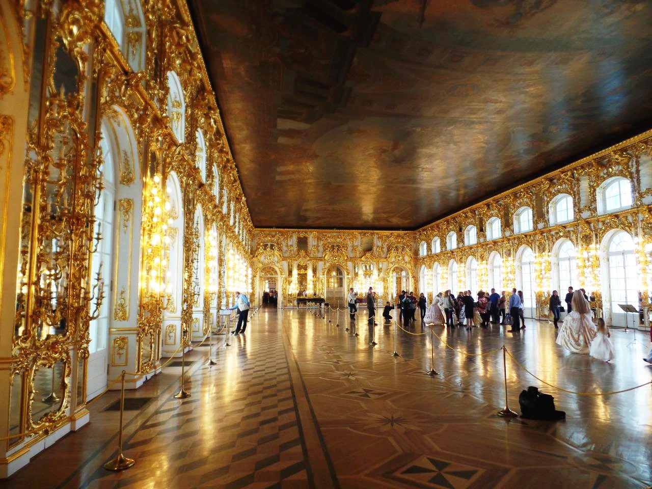 그저 감탄사밖에 나오지 않는 광경이 펼쳐졌다. 진짜 황금이 조명의 빛과 맞닿으니 더욱 화려하게 '내가 황금이다'라고 자신을 뽐내고 있다. 이렇게 으리으리하고 화려한 궁전에서 산다면 어떤 생각이 들까? 나중에는 무뎌져서 황금이 일반 대리석처럼 보이지는 않을까? 천장에는 에르미타주보다 더 화려한 벽화가 그려져 있다. 너무 넓어서 카메라로 한 번에 담을 수조차 없었다. 솔직히 어디든 입장료를 지불하고 어디든 건물 내부로 들어와서 만족스럽게 관광했던 적은 거의 없었다. 이 예카테리나 궁전이 거의 유일한 사례인 것 같다. 미쳤다, 그저 말도 되지 않는 풍경에 빠져들고 있다. 여행의 이유 중에 하나라고 생각하는 세상을 보는 시야의 확장. 그렇다, 지금 세상을 보는 내 눈은 넓어지고 있는 중이다. 진짜 여행을 하면 겸손해지는 것 같다. 내가 살았던 내 세계가 한없이 협소하게 느껴진다.