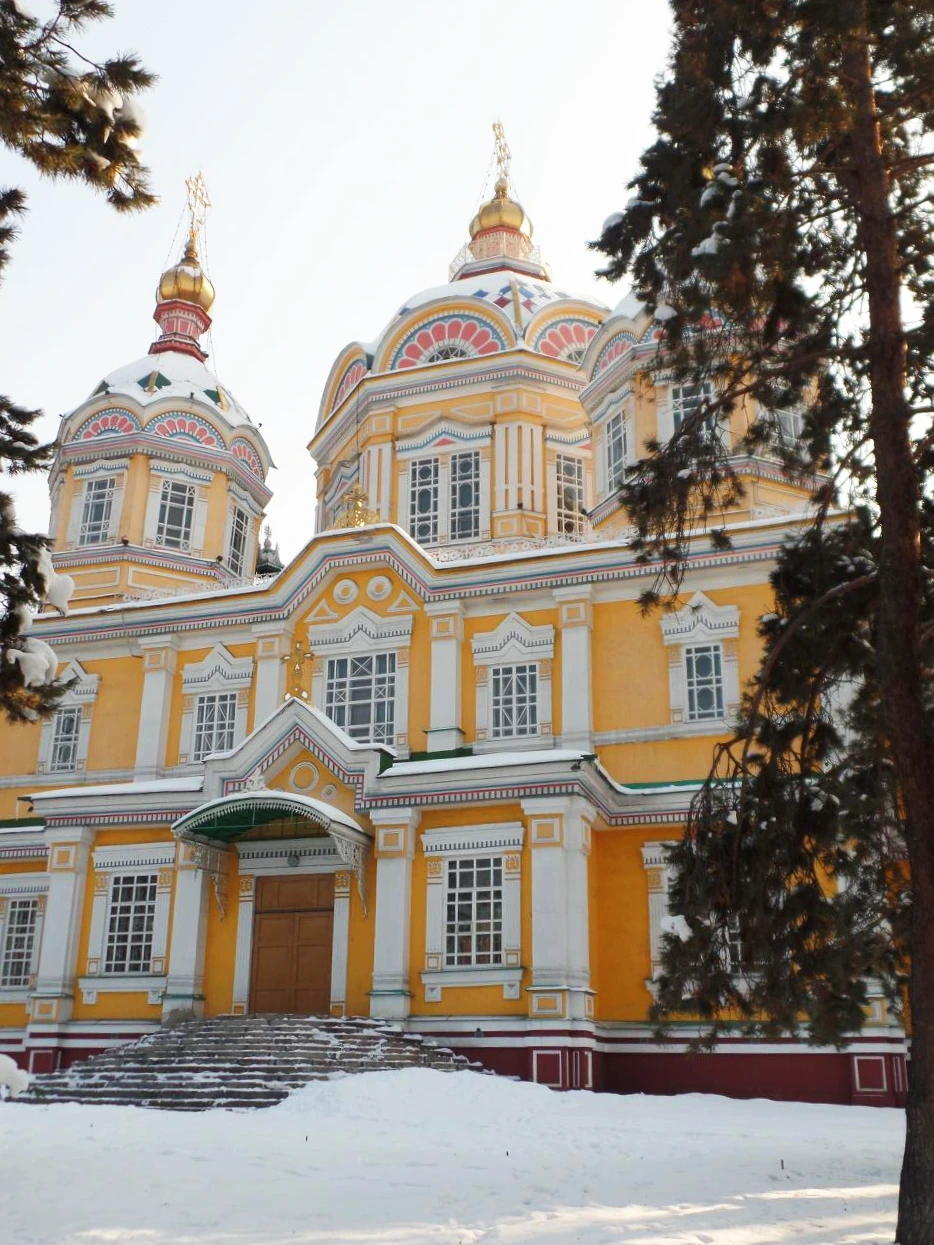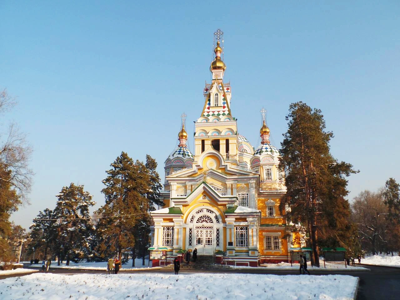 결국 거리의 음악가에는 100탱게란 돈이 나갔다. 하지만 아깝지 않았다. 이를 뒤로하고 발걸음을 재촉해서 도착한 판필로프 공원에 있는 러시아 정교회 젠코브 대성당. 이 성당은 세계에서 두 번째로 큰 목조 건축물이라고 한다. 20세기 초반 알마티를 강타한 진도 10의 강진 속에서도 살아남았다고. 이러한 사실은 한국에 돌아오고 나서야 알았다. 알마티에 살았을 때는 그냥 러시아 정교회 성당이구나 싶었지만. 국민 대부분이 이슬람교를 믿는 카자흐스탄이지만, 소련의 오랜 지배를 받은 영향 때문에 러시아 정교를 믿는 국민들도 꽤 있다고. 오늘은 교환학생 생활 마지막을 정리하는 날이니까 왠지 성당 안으로 들어가고 싶어 졌다.